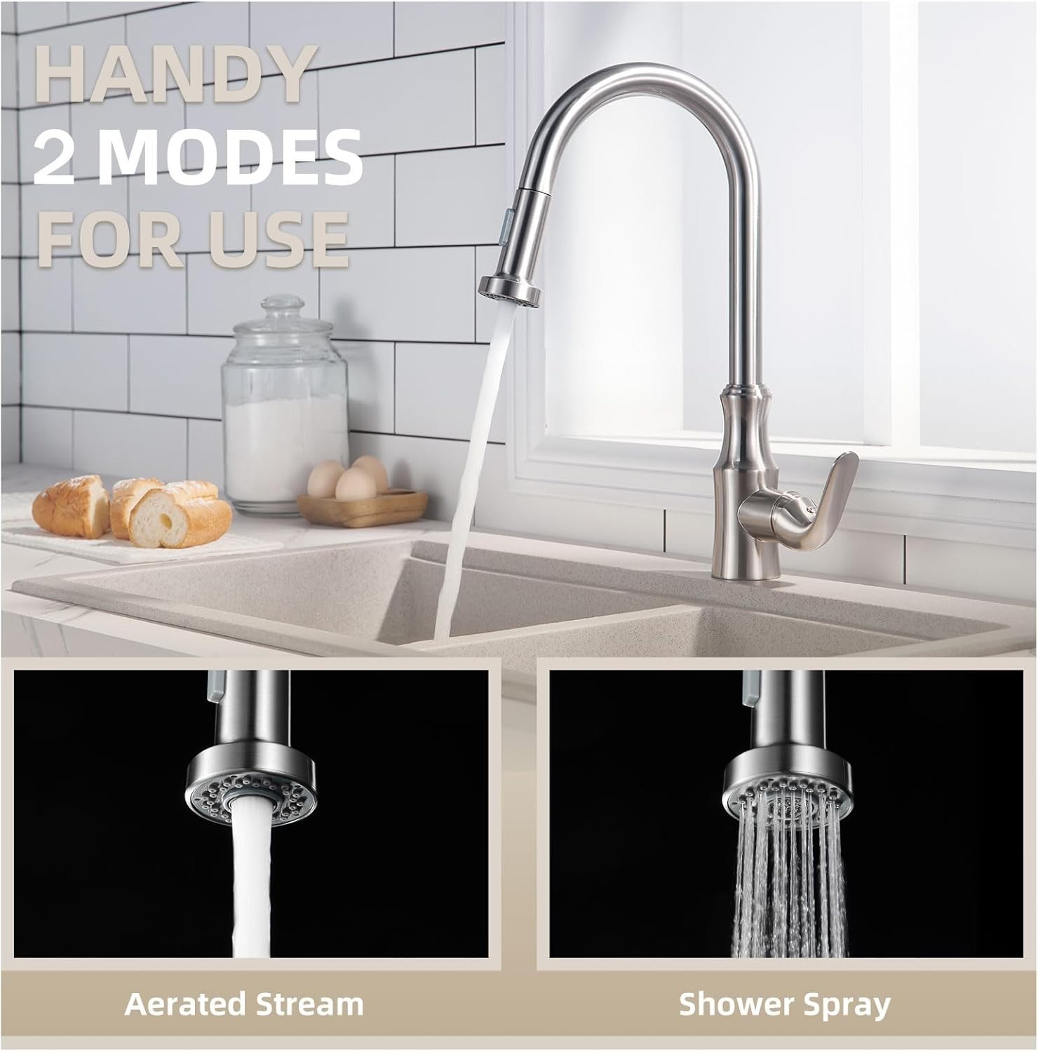 Kitchen Sink Sprayer Replacement Faucet Head Stream Spray Mode Brushed Nickel EZ