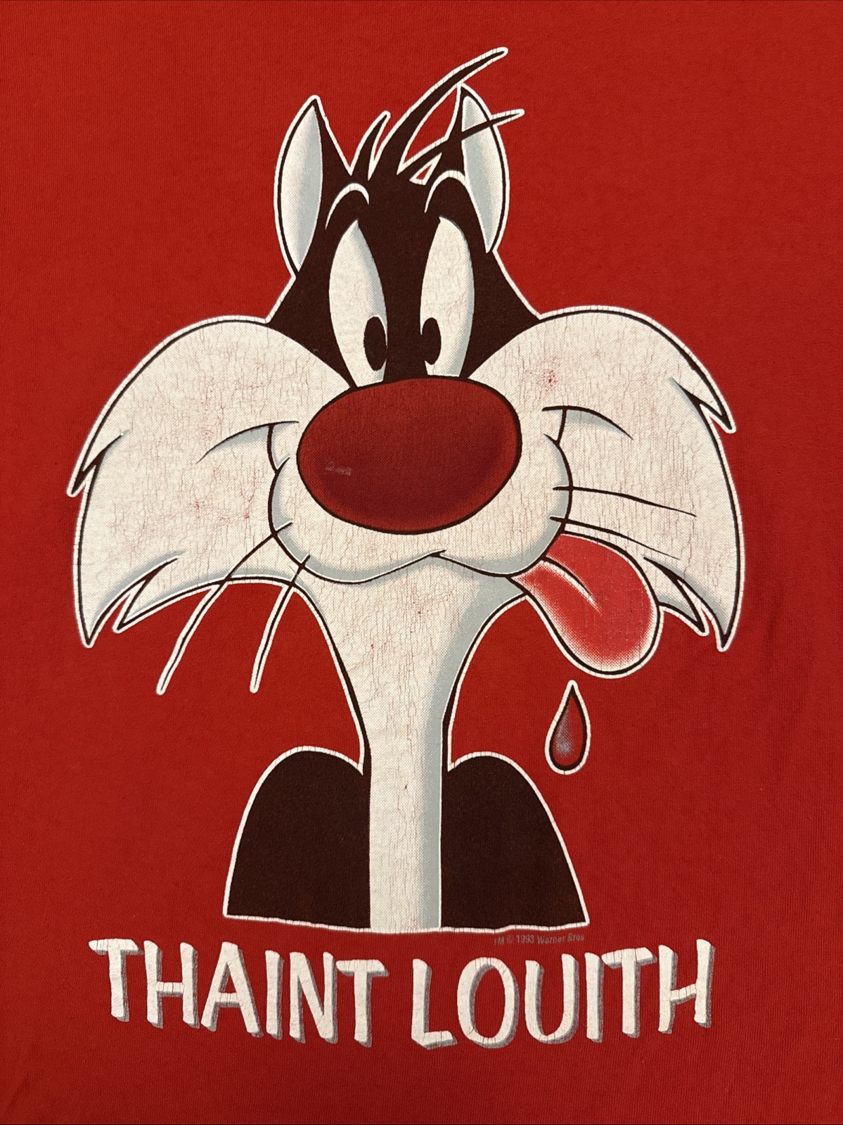 Vintage 1993 Sylvester T Shirt Single Stitch Adult Size XL Red Thaint Louith EUC