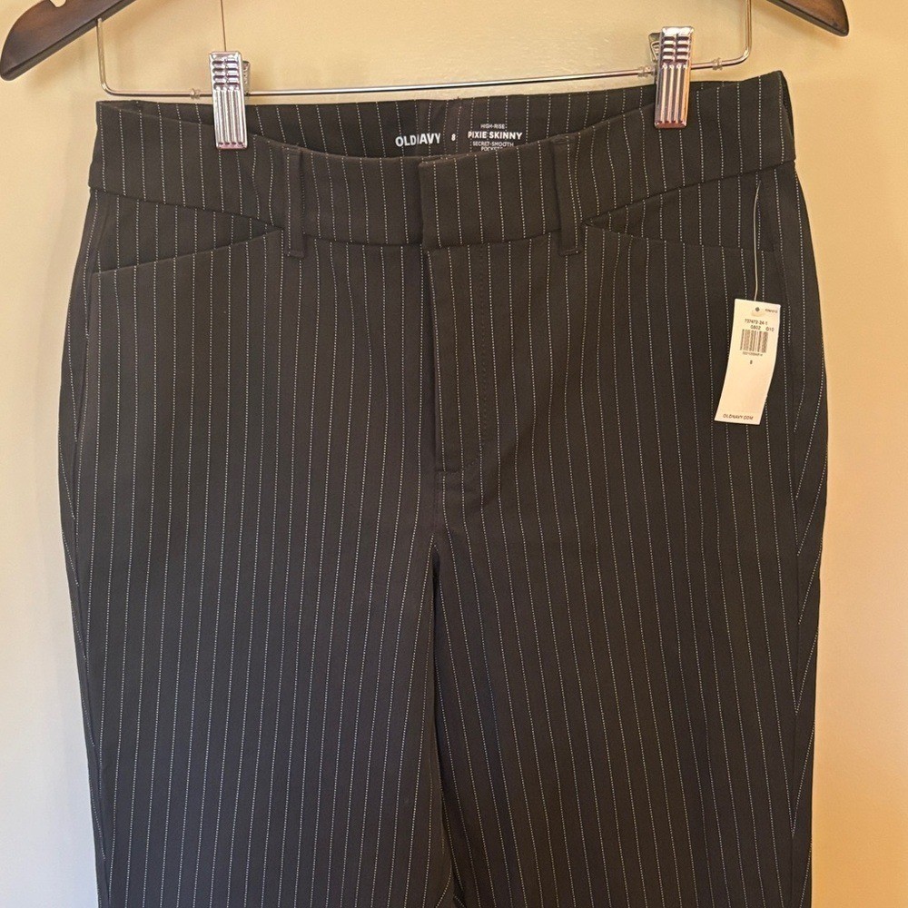 NWT Old Navy Women's Navy Pinstripe High-Rise Pixie Skinny Pants Office Size 8