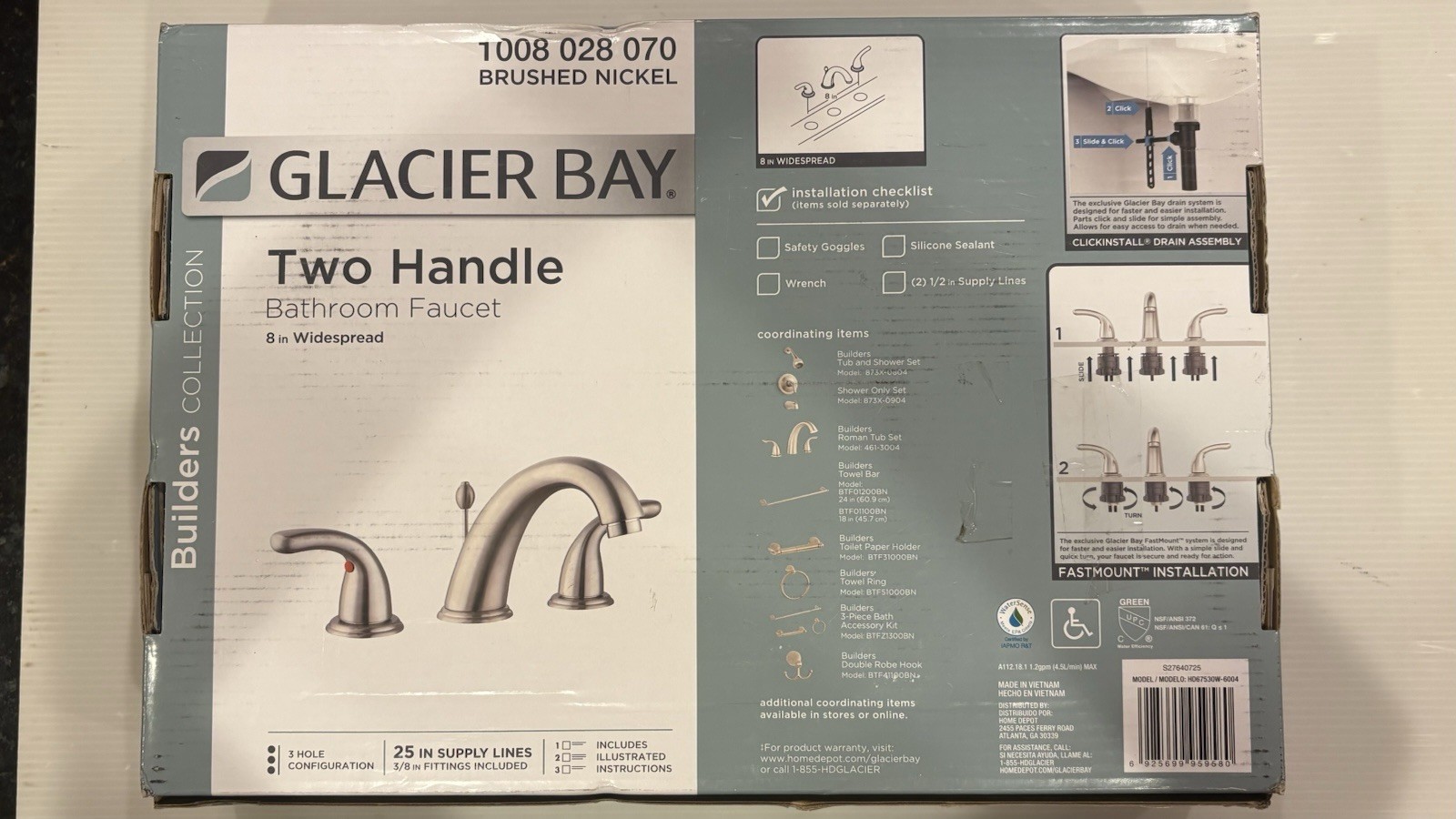 как выглядит Glacier Bay Builders 8 in. Widespread Double-Handle High-Arc Bathroom Faucet фото
