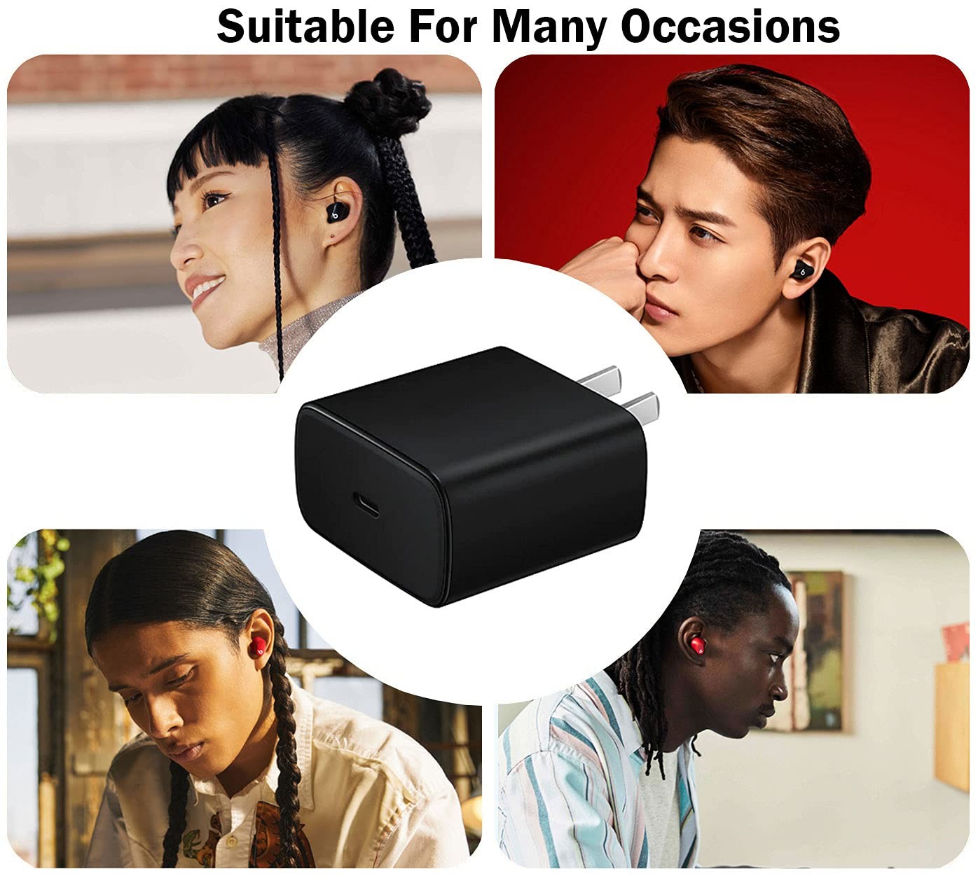 USB-C 20W Charging Block Charger Adapter for Beats Earbuds, Solo Black