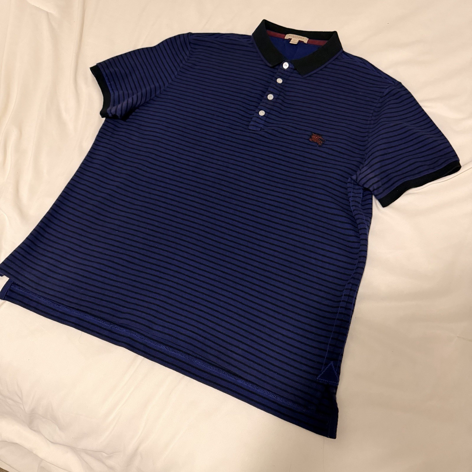 как выглядит Burberry Brit Mens Polo Golf Shirt Collar Blue/Black Stripe XXL 100 Authentic фото
