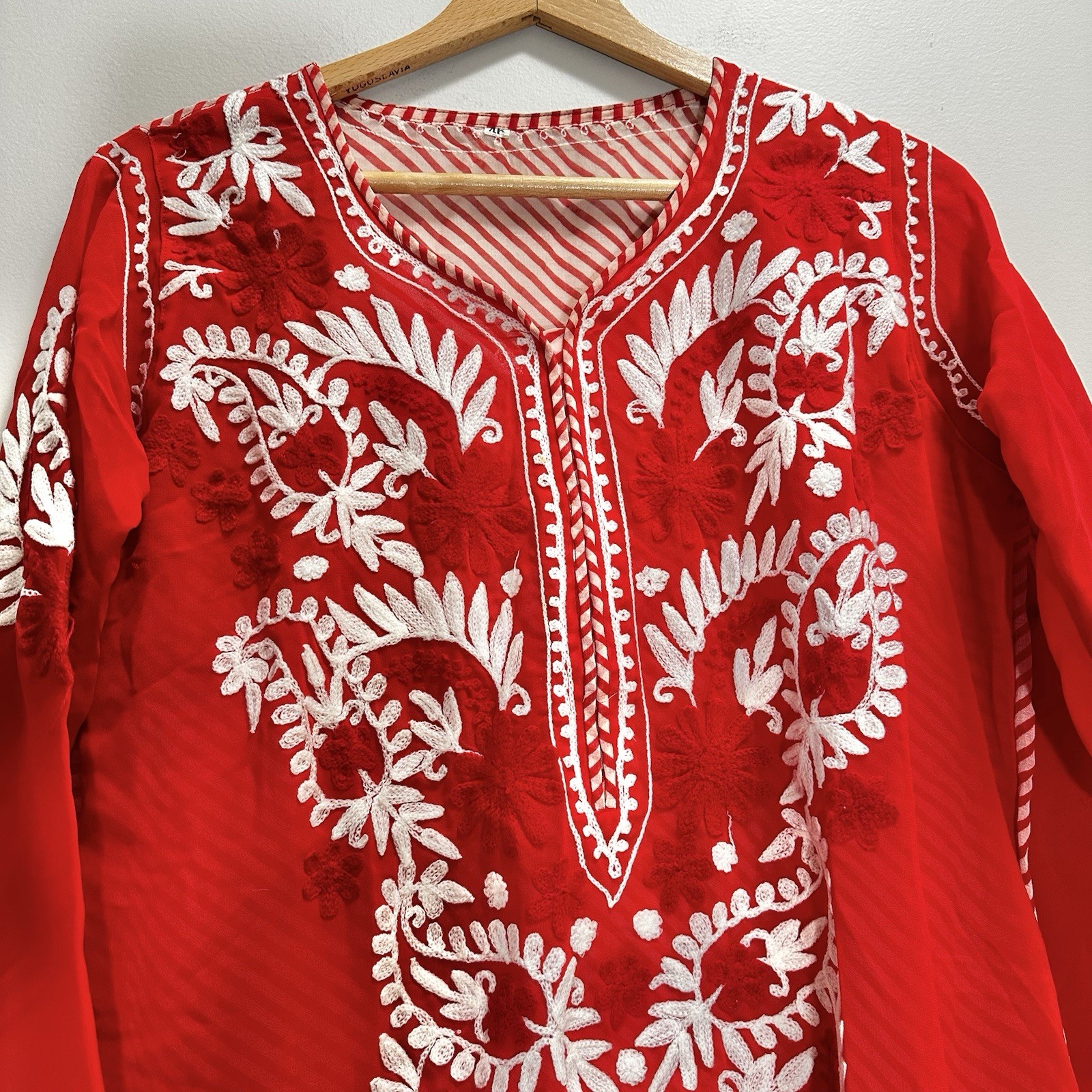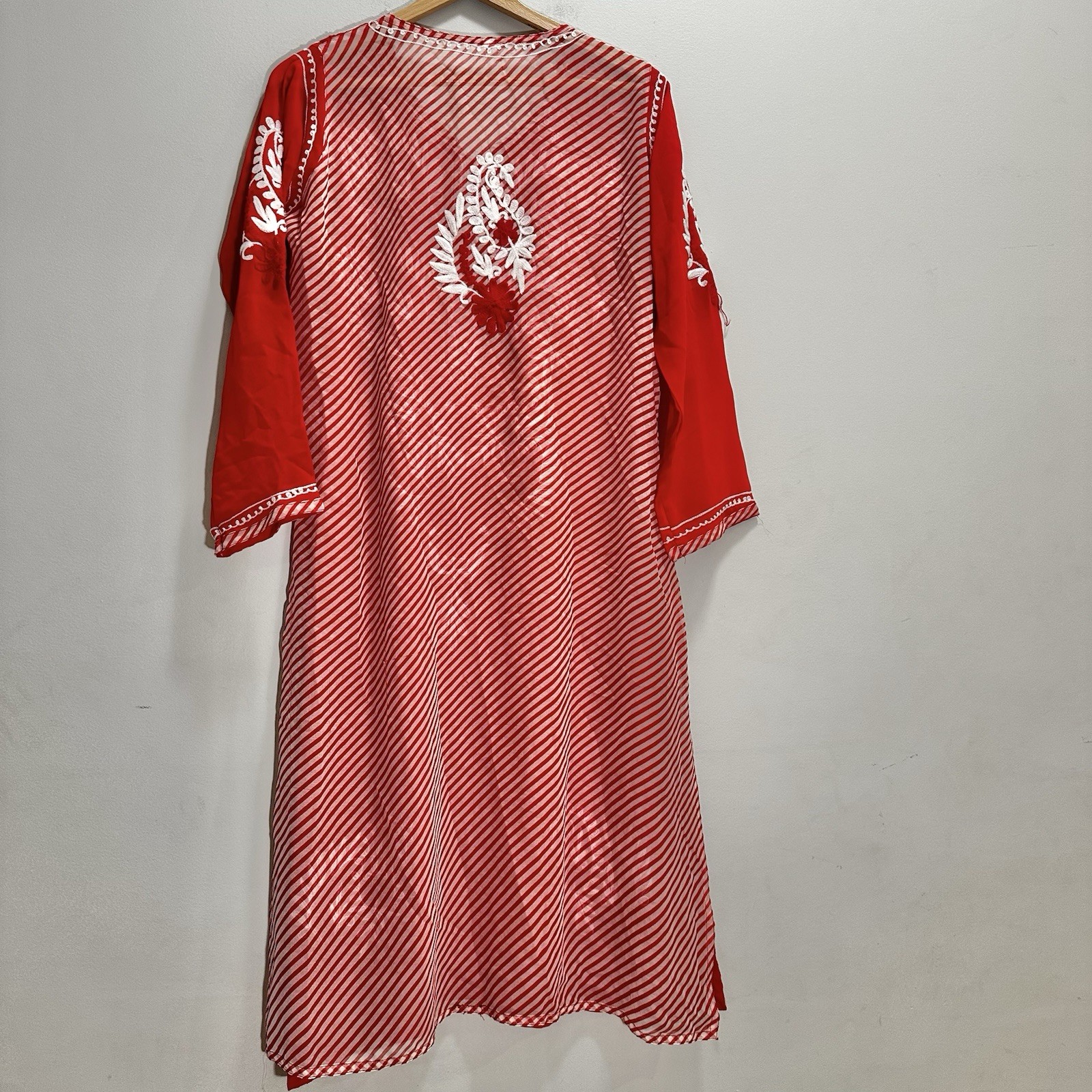 как выглядит Lightweight Indian Kurta Womens Large EU 46 Red and White Embroidery фото