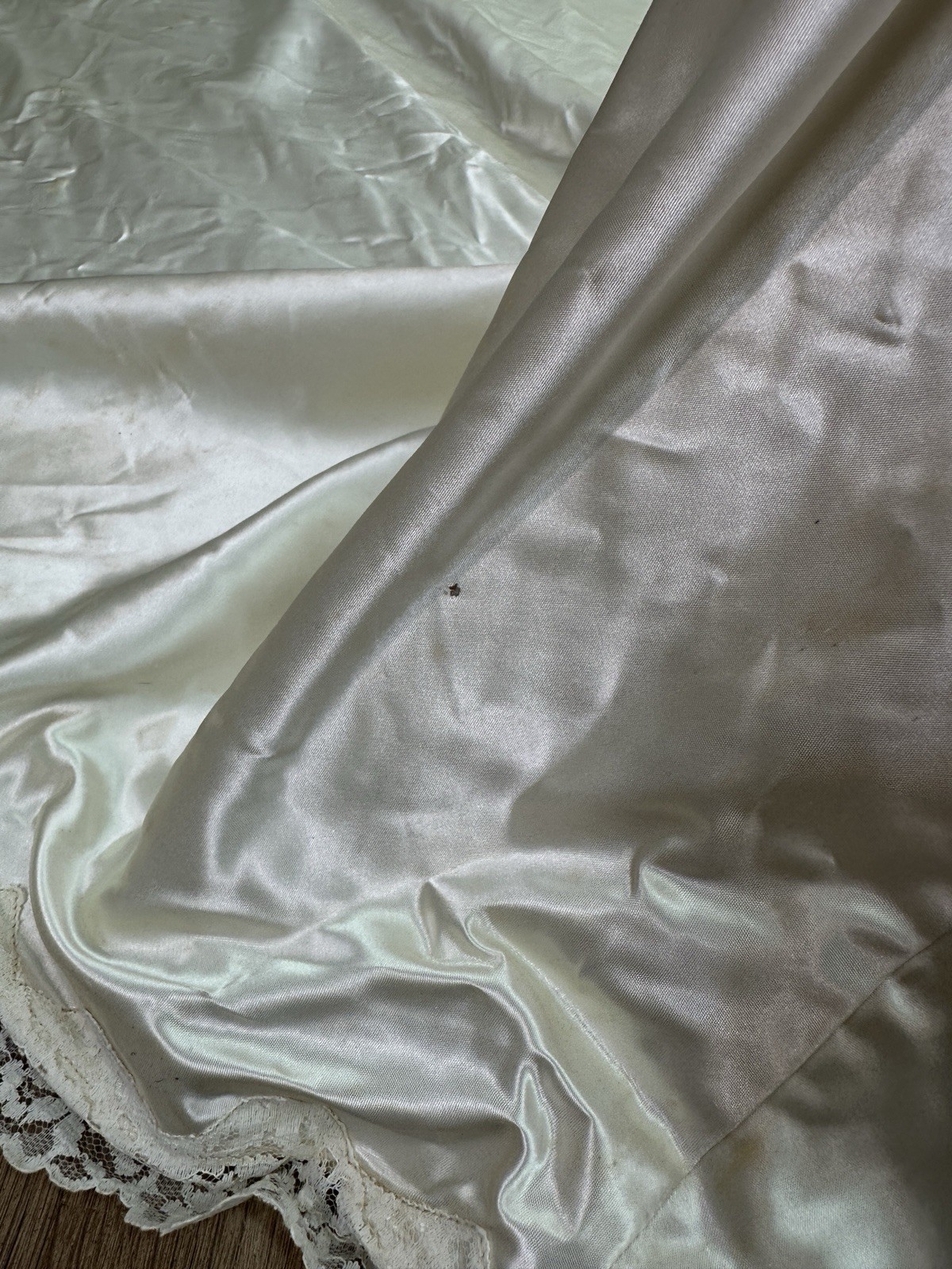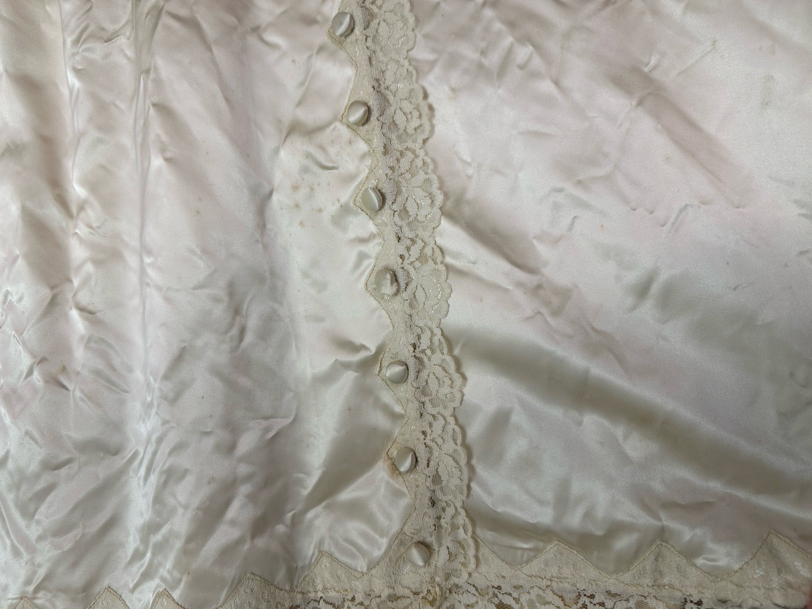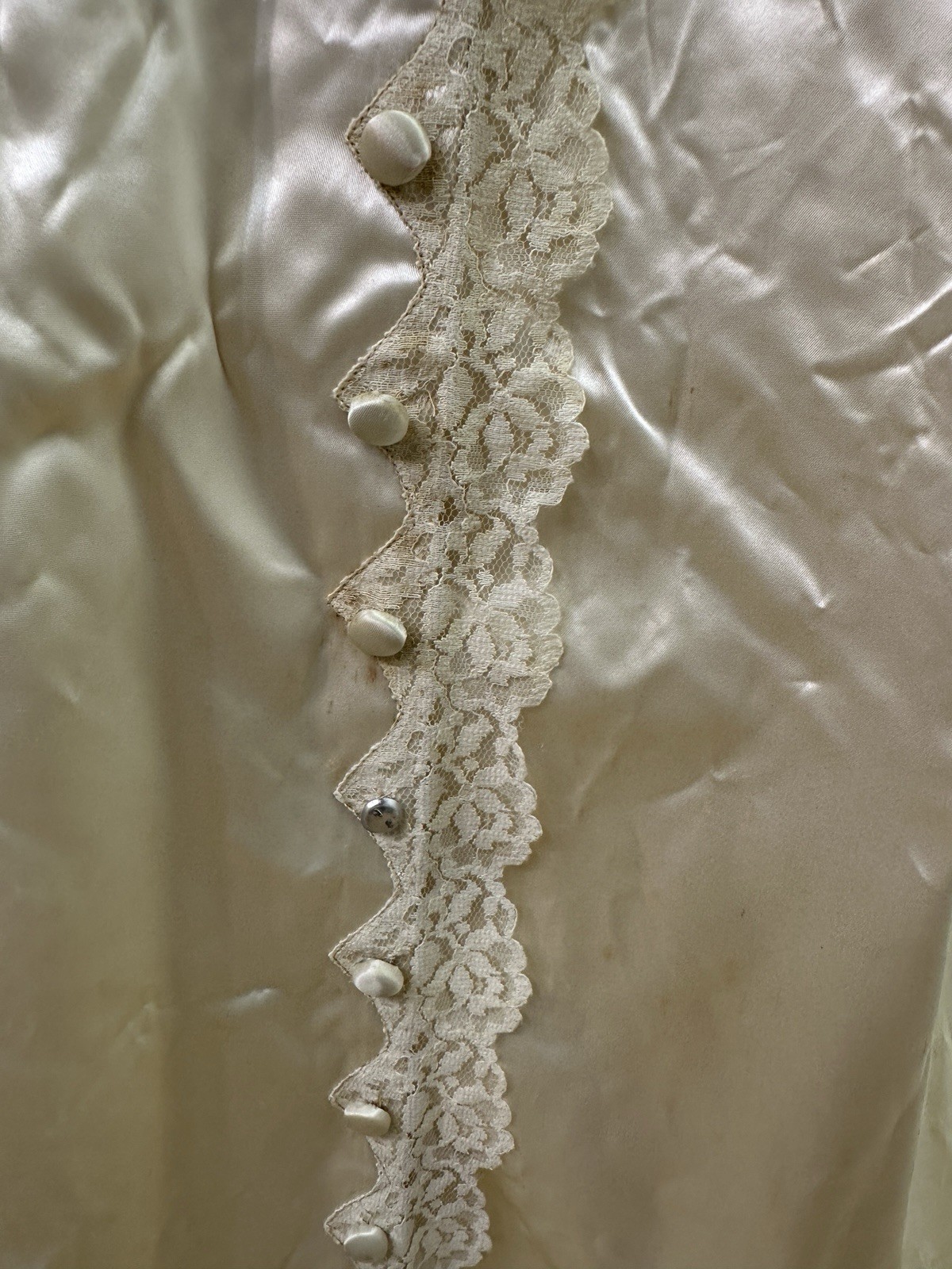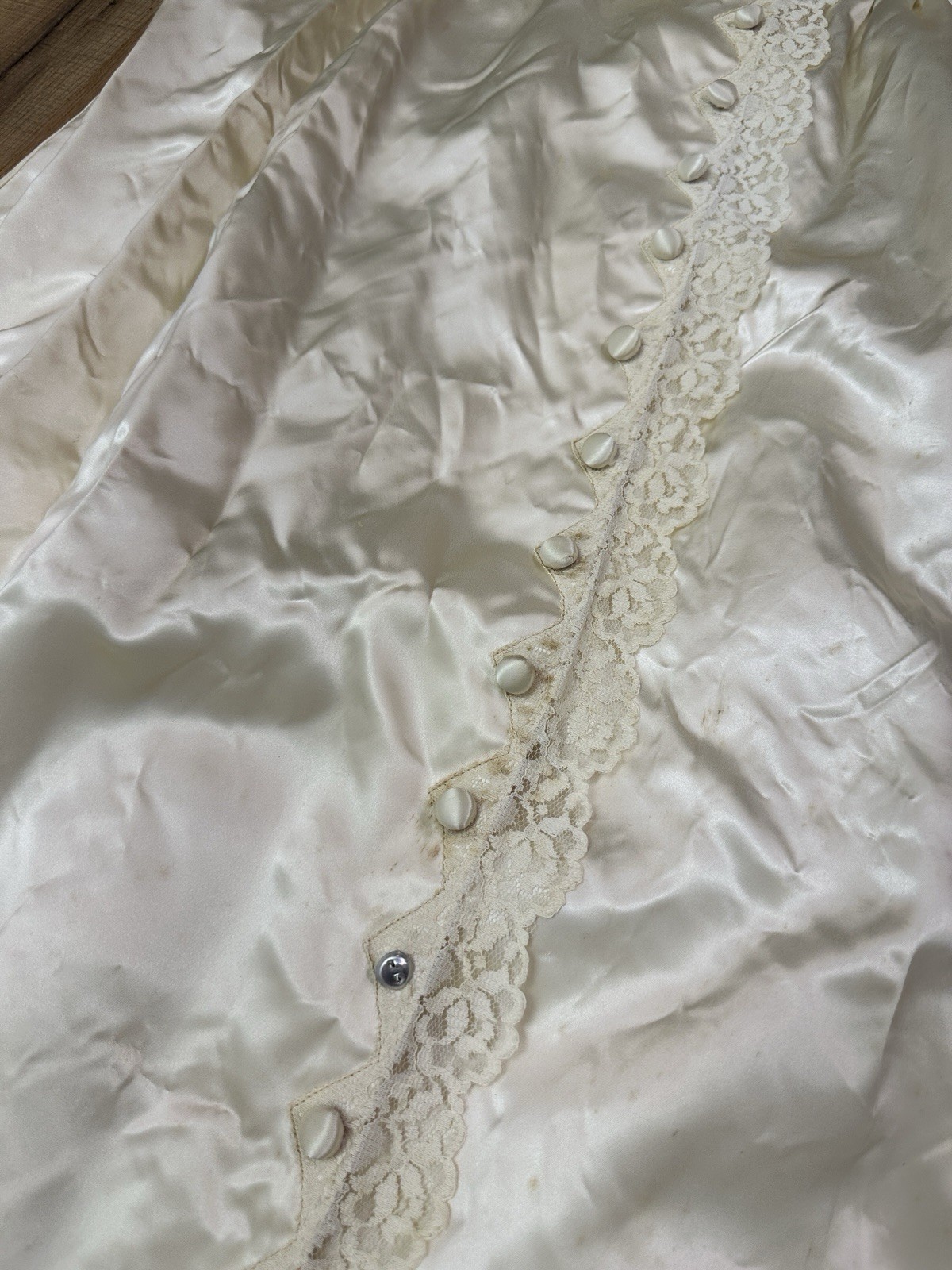 Vintage Antique Satin Cream Wedding Dress Button Front Edwardian Medium FlAw