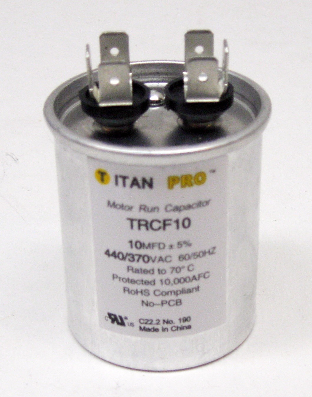 TitanPro TRCF10 HVAC Round Motor Run Capacitor. 10 MFD/UF 440/370 Volts