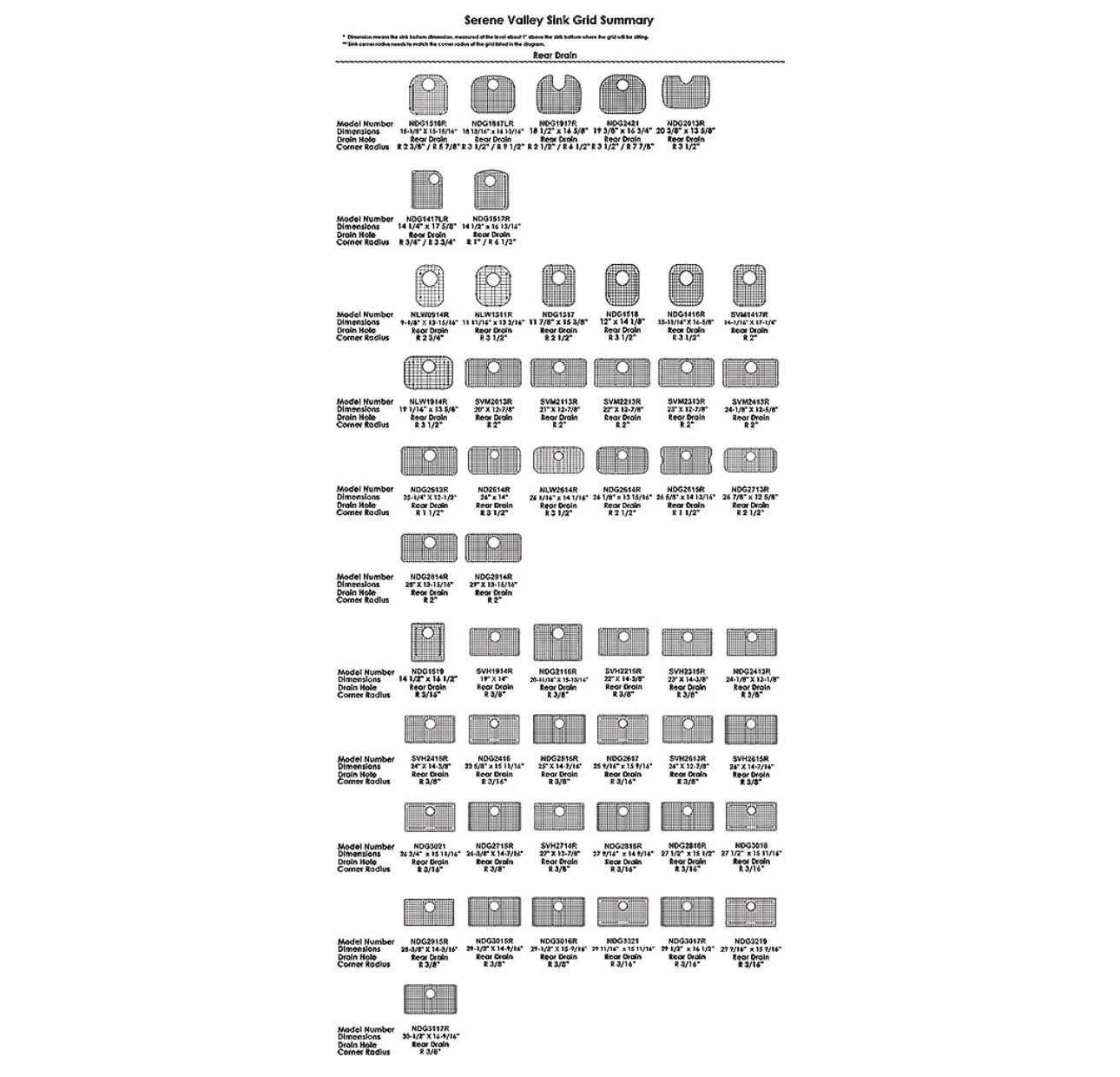 Sink Protector 29-1/2 x 15 9/16 Grid Rear Drain NDG3016R Corner Radius 3/8 New