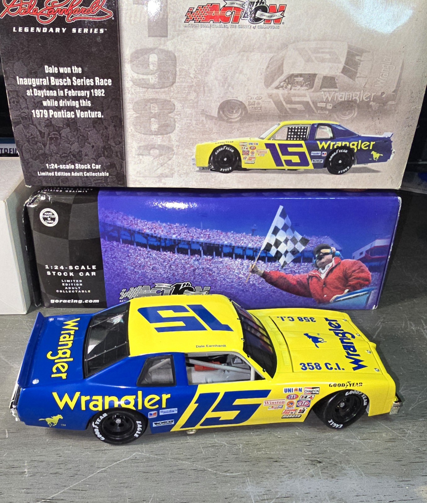 как выглядит 2002 Action 1:24 Dale Earnhardt 15 Wrangler 1982 Pontiac Ventura Daytona фото