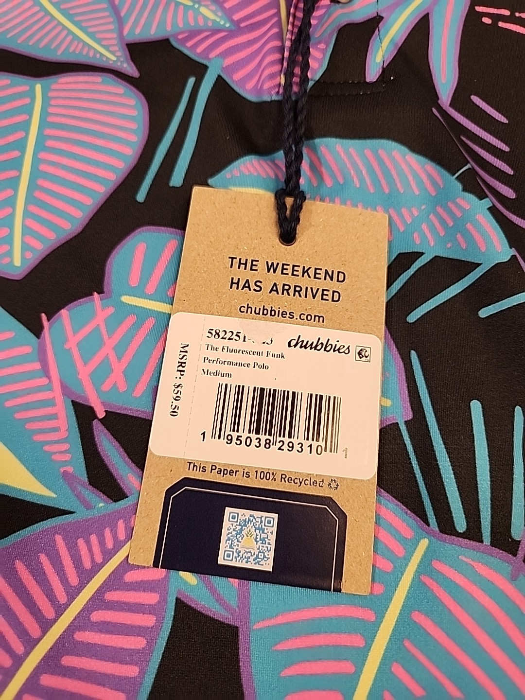 59 NEW Chubbies Mens Medium The Fluorescent Funk Golf Performance Polo Shirt