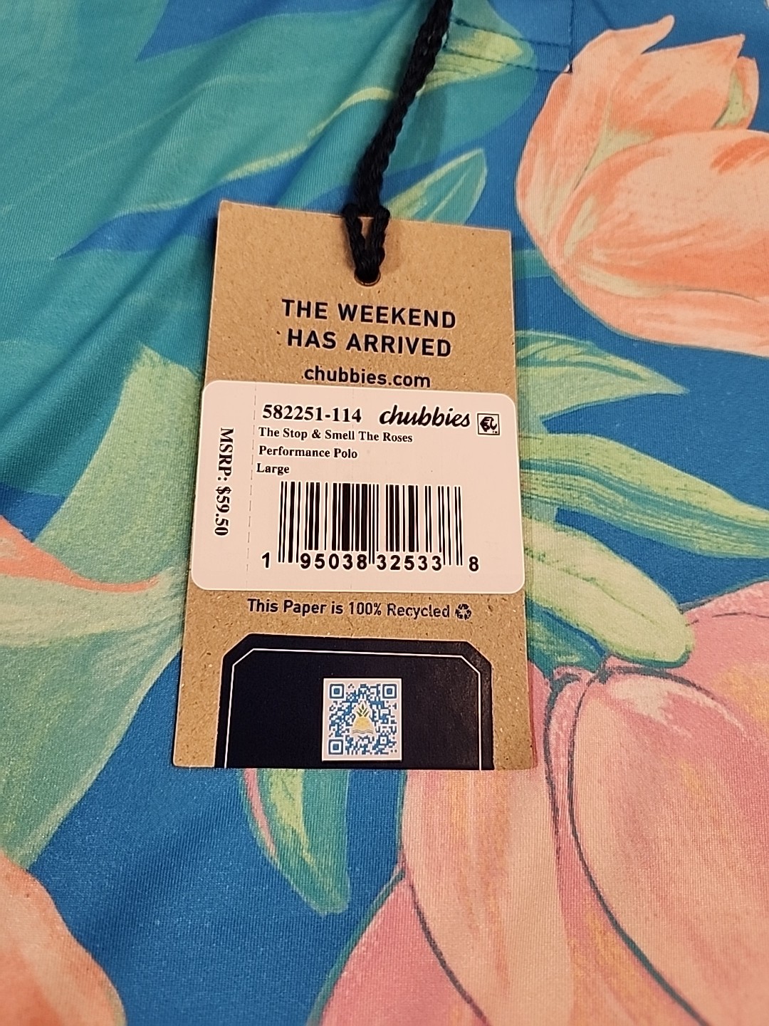 как выглядит Chubbies Large The Stop Smell The Roses Performance Polo Shirt NWT фото