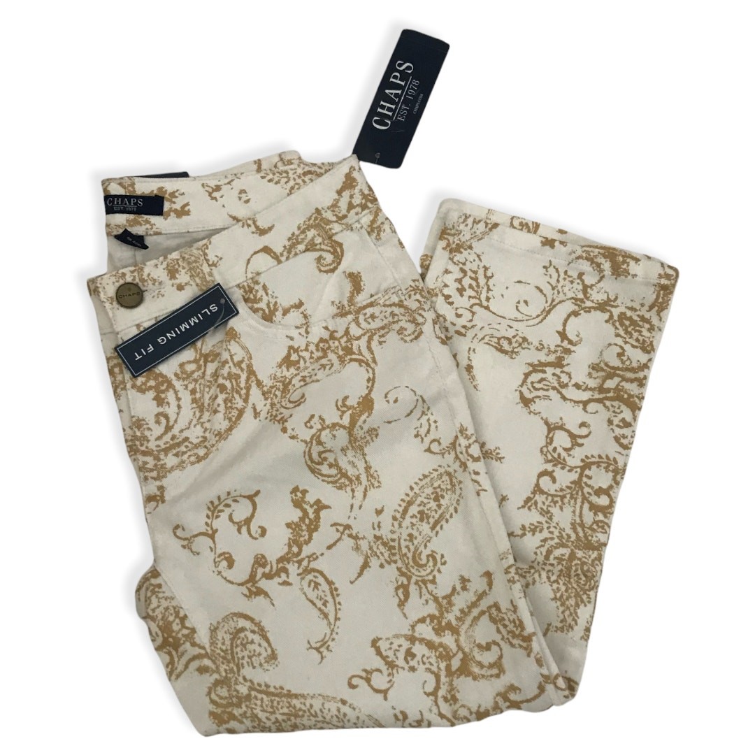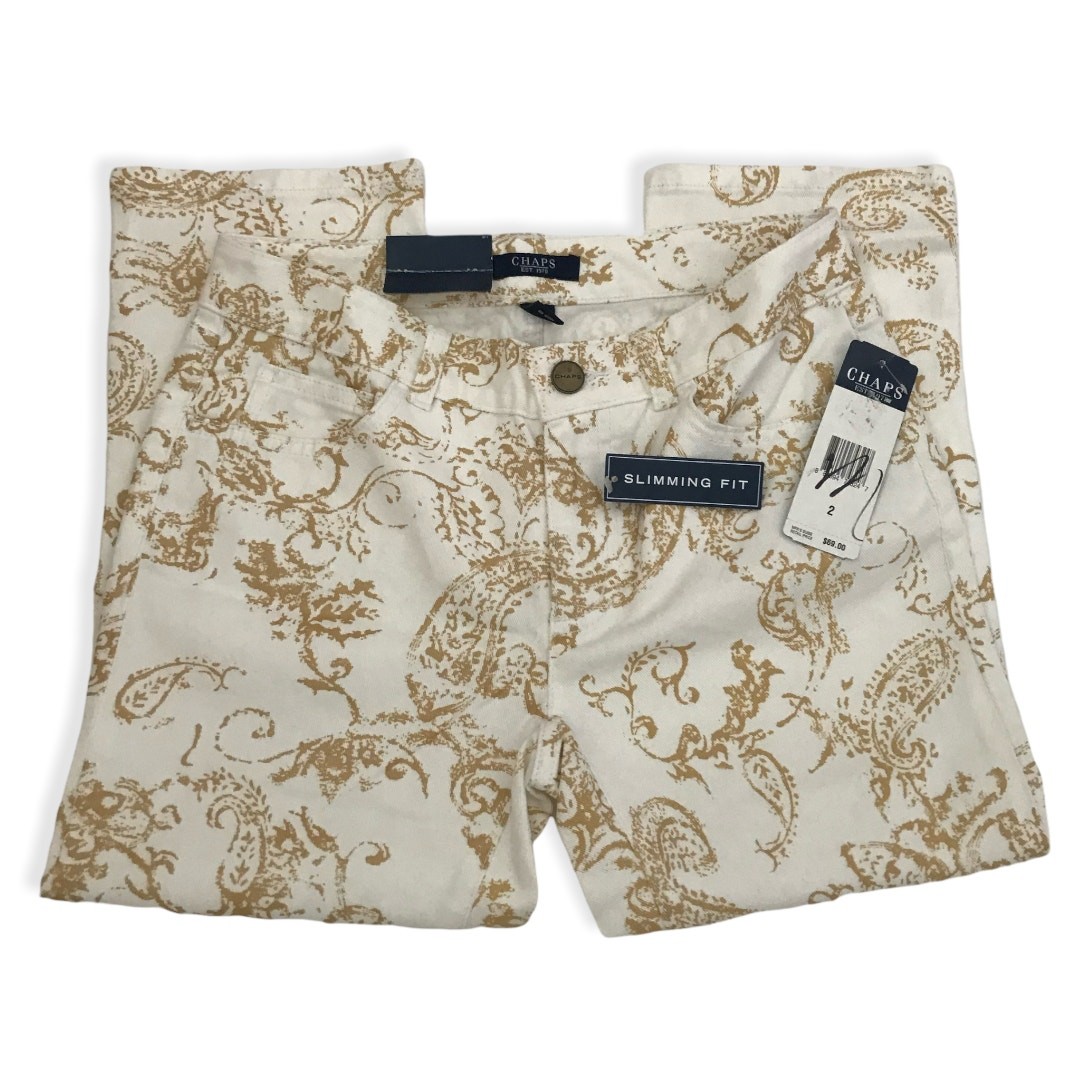 NEW Chaps Slimming Fit White Gold Paisley Crop Capri Jeans 2