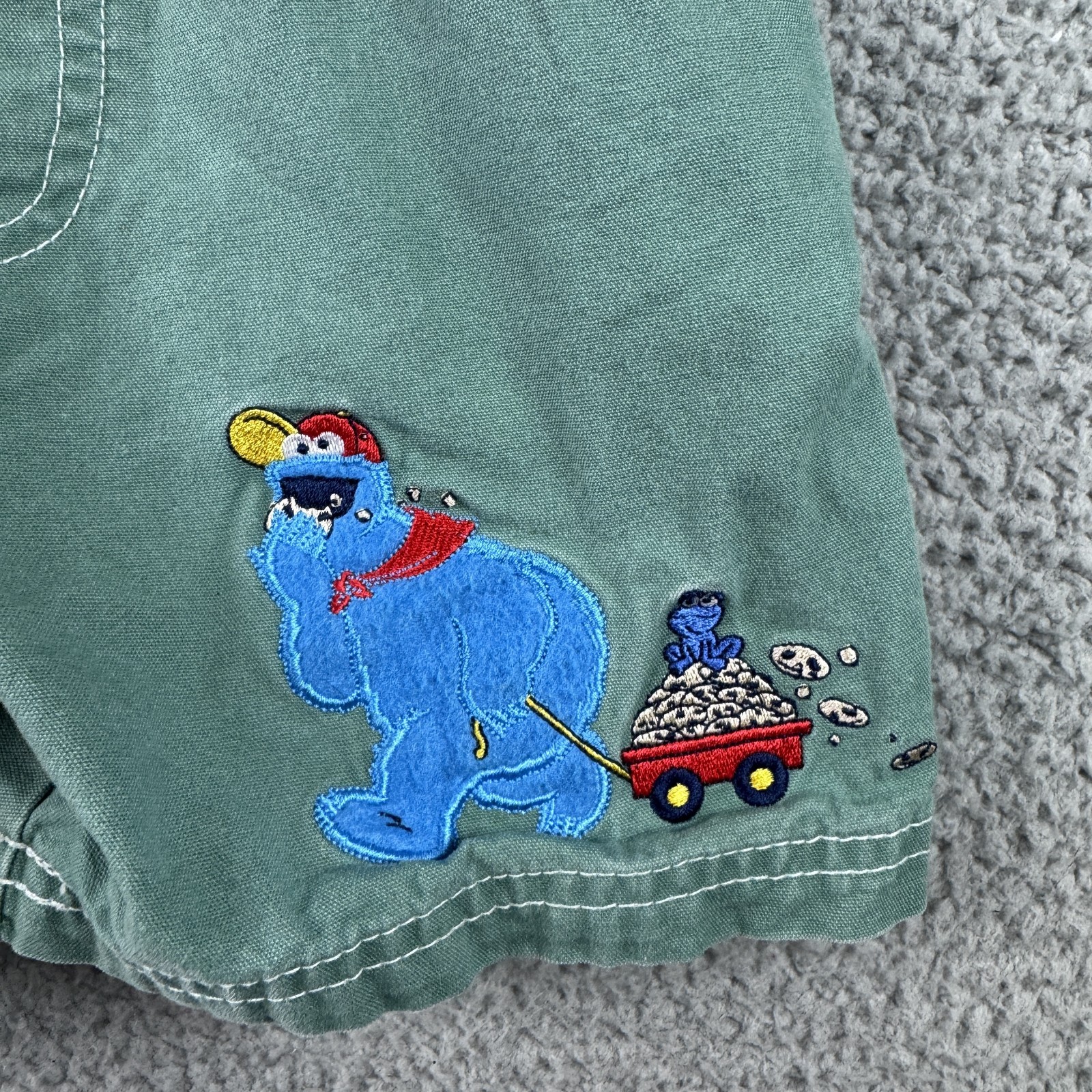 как выглядит Vintage Sesame Street Shortalls Toddler 4 Green Big Bird Cookie Monster фото