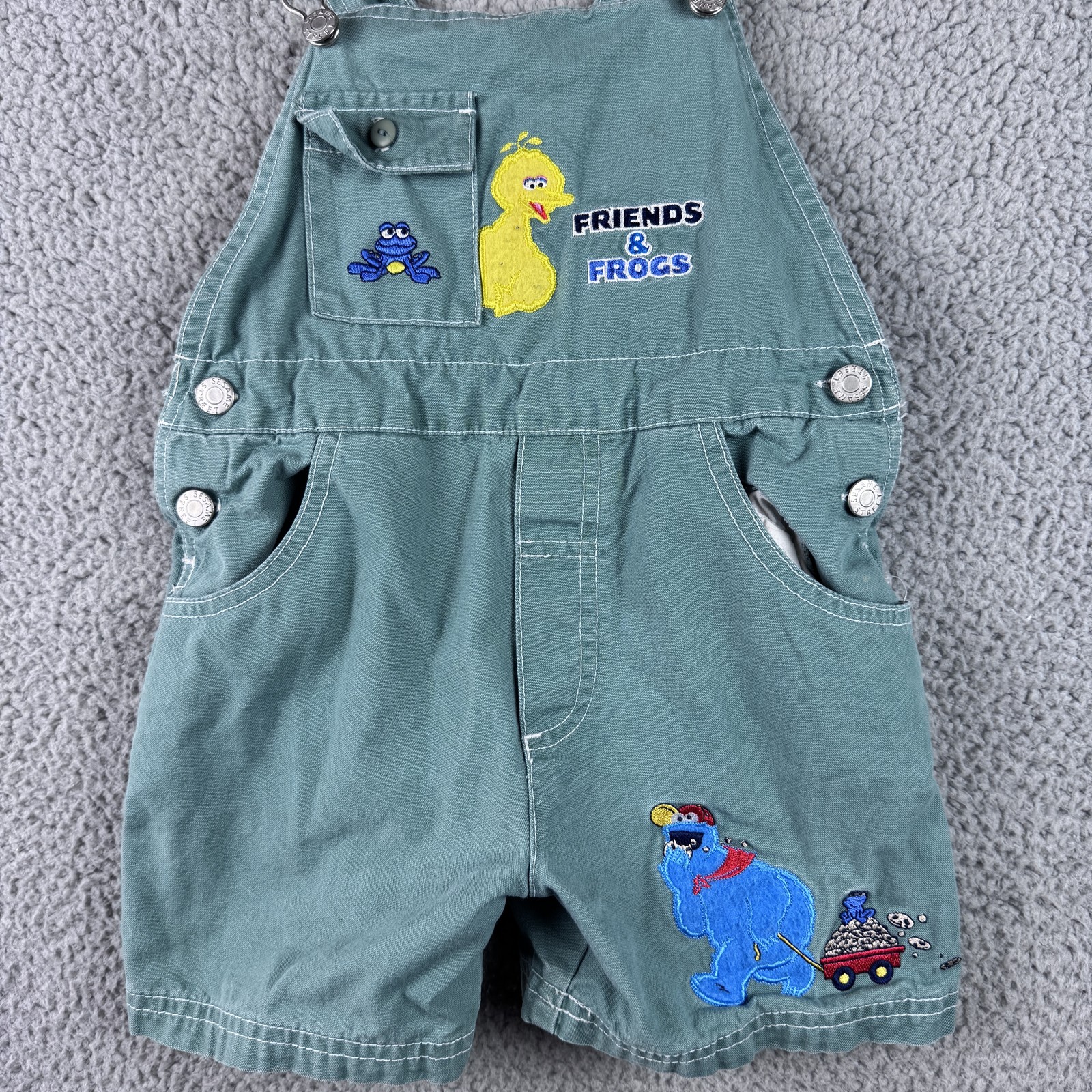 Vintage Sesame Street Shortalls Toddler 4 Green Big Bird Cookie Monster