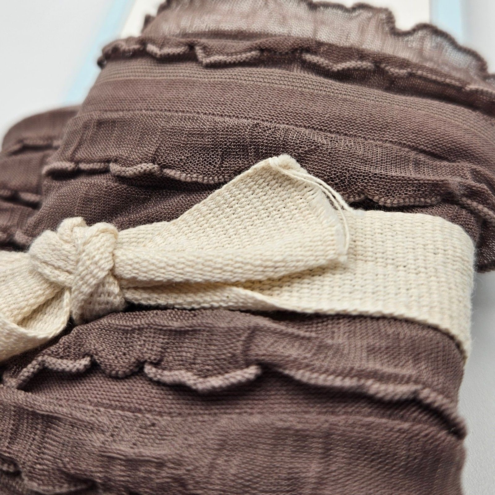 как выглядит New Little Boot Peep Boot Toppers Layered Ruffled Taupe BRN OSFM 6" Tall 21.95 фото