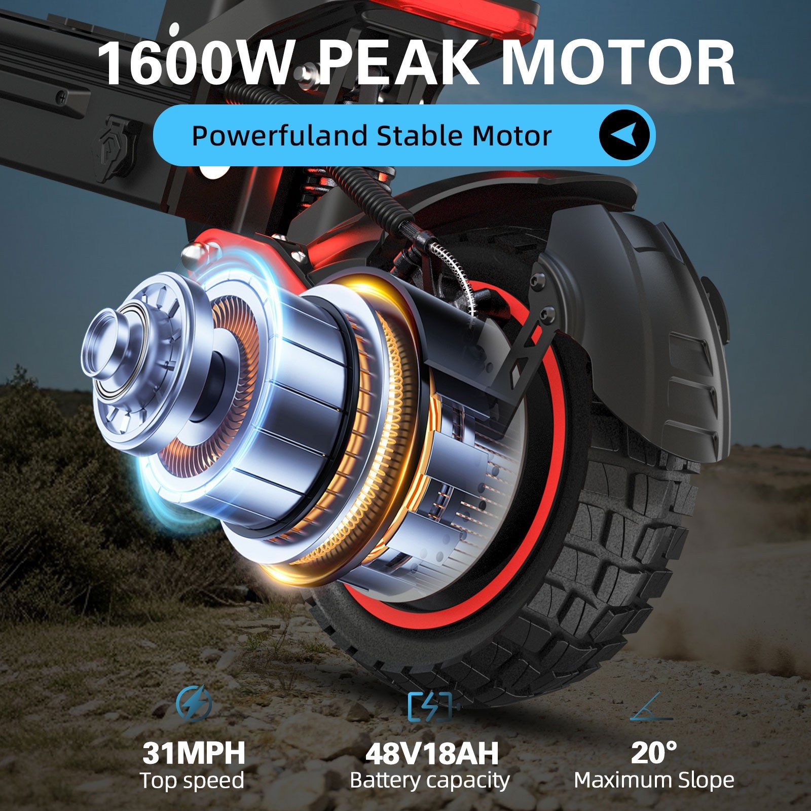 Electric Scooter 48v 1600W For Adult 10Off Road Fat Tires Fast Speed USA MAX WM