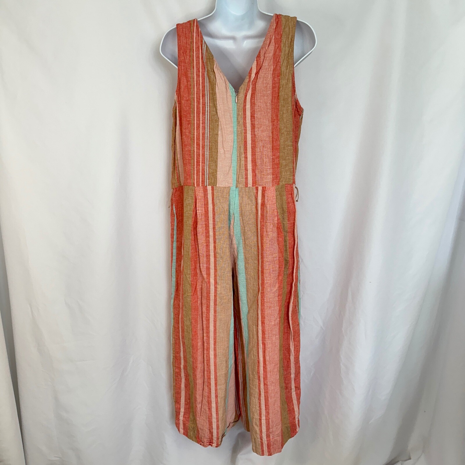 Beachlunchlounge Striped Linen Blend Jumpsuit Pockets Casual Womens Medium