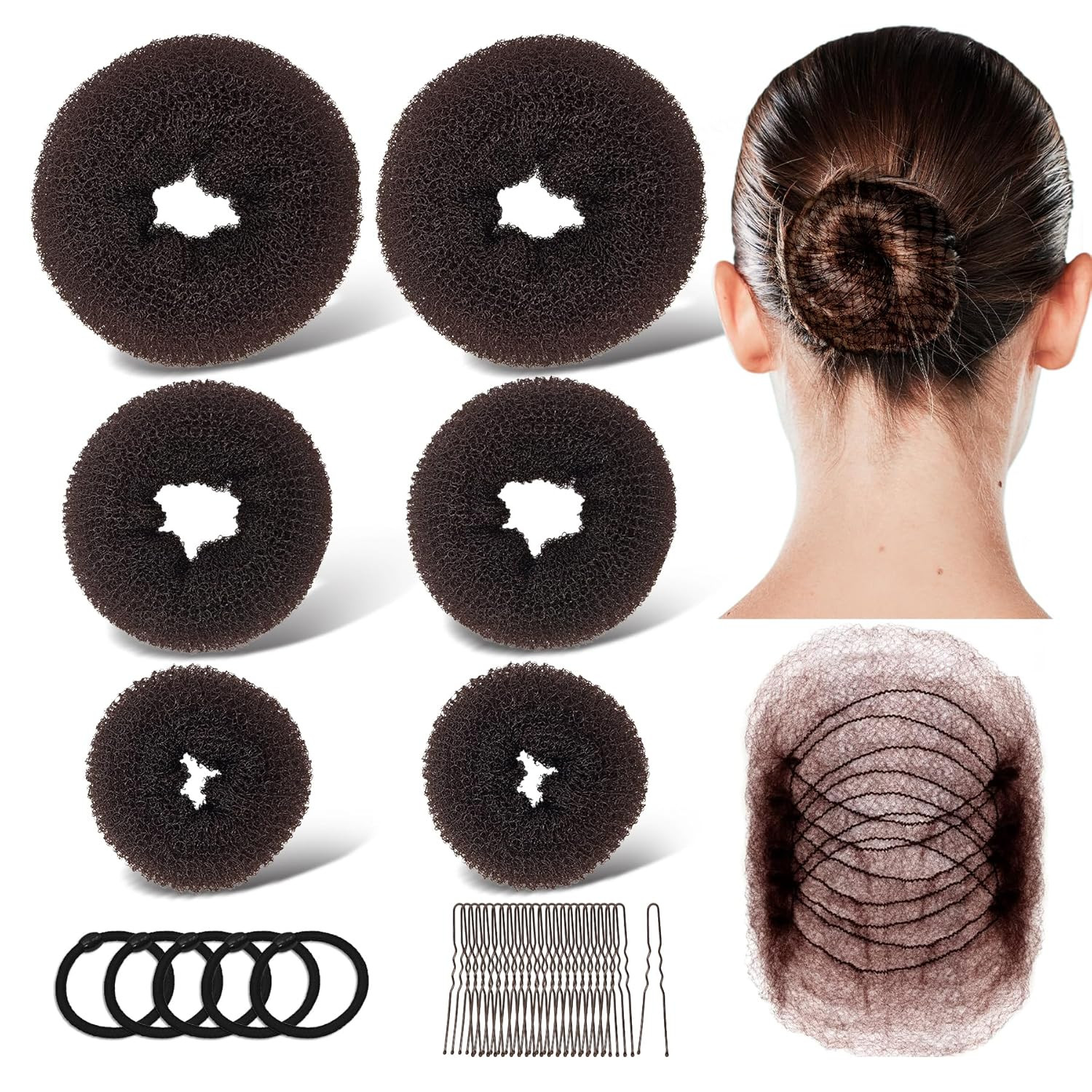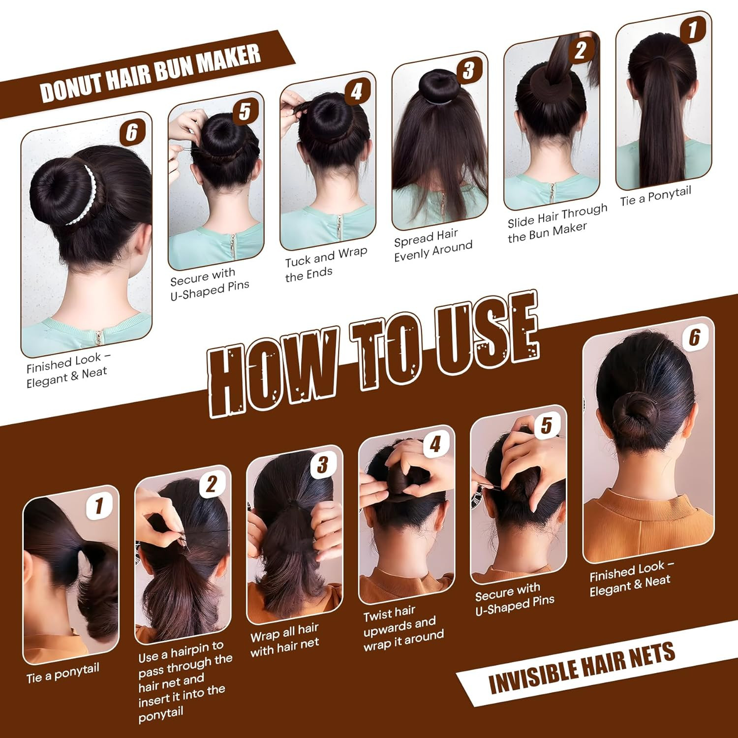 Hair Bun Maker and Nets Kit 6PCS Bun Makers, 20PCS Invisible Hair Nets, 40PCS