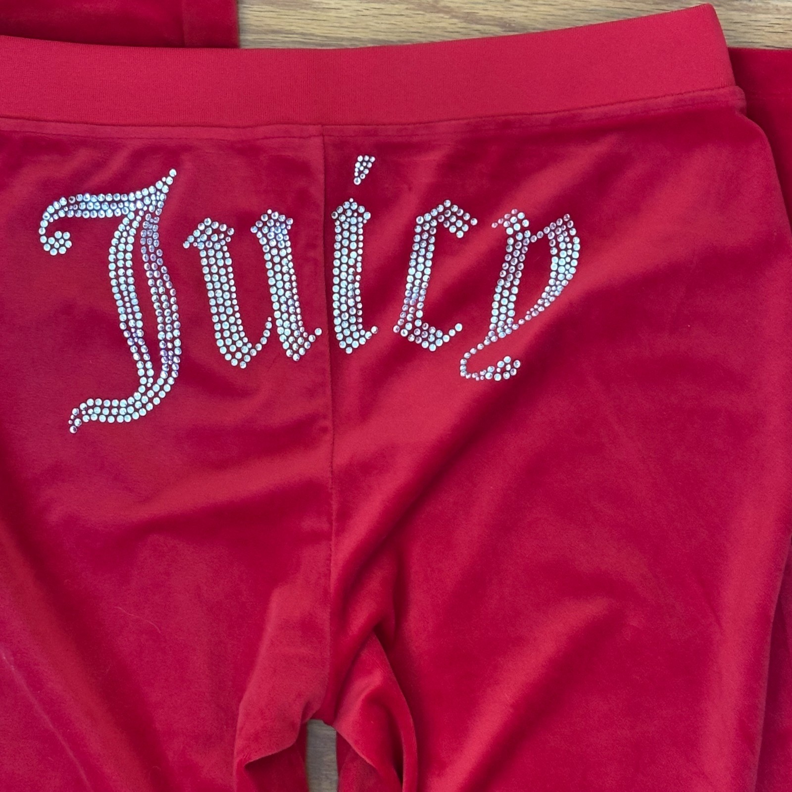 как выглядит Juicy Couture Size L Velour Mid Rise Pants Coco Red Rhinestone Logo фото