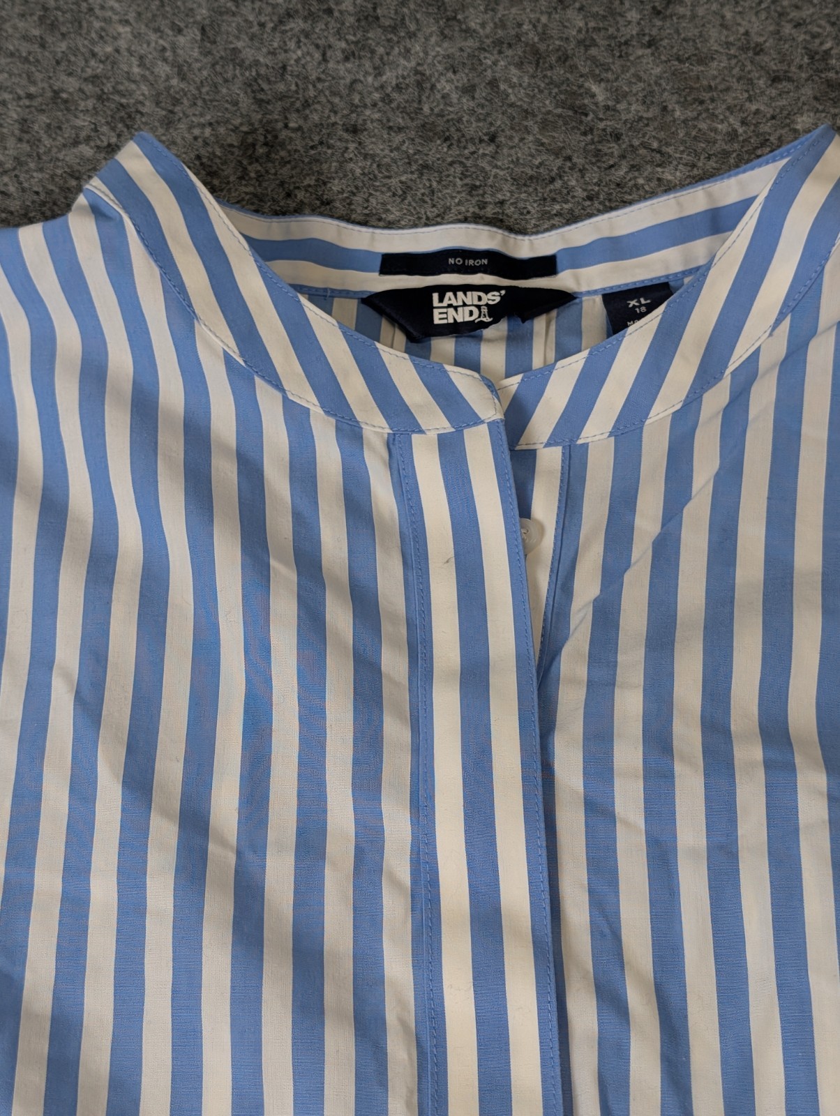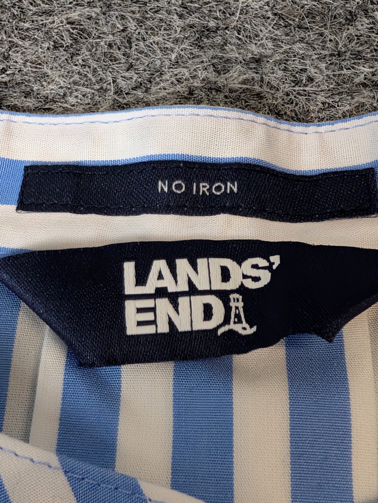 как выглядит Lands End Dress Shirt Mens XL / 18 Blue Stripe No Iron Button Fly Front EUC фото