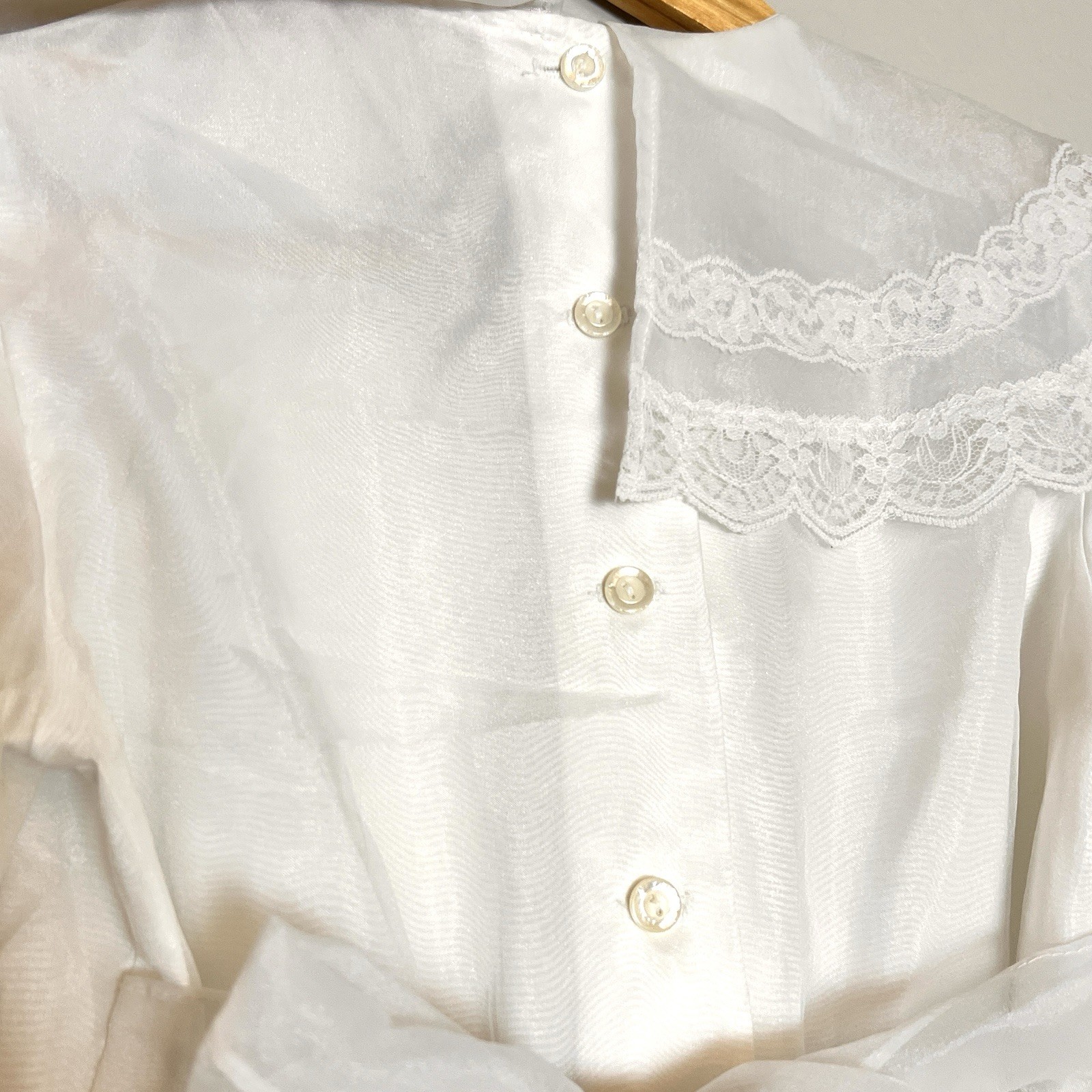 как выглядит Vtg Bonnie Jean First Communion Flower Girl Dress White Lace Sheer Overlay L фото