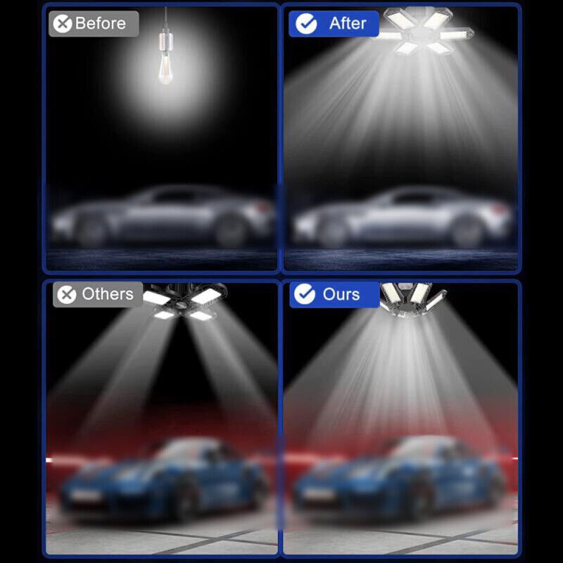 4 Pack 600W Garage Light LED Bulb Bright 6 1Deformable Panels Work Shop Ceiling