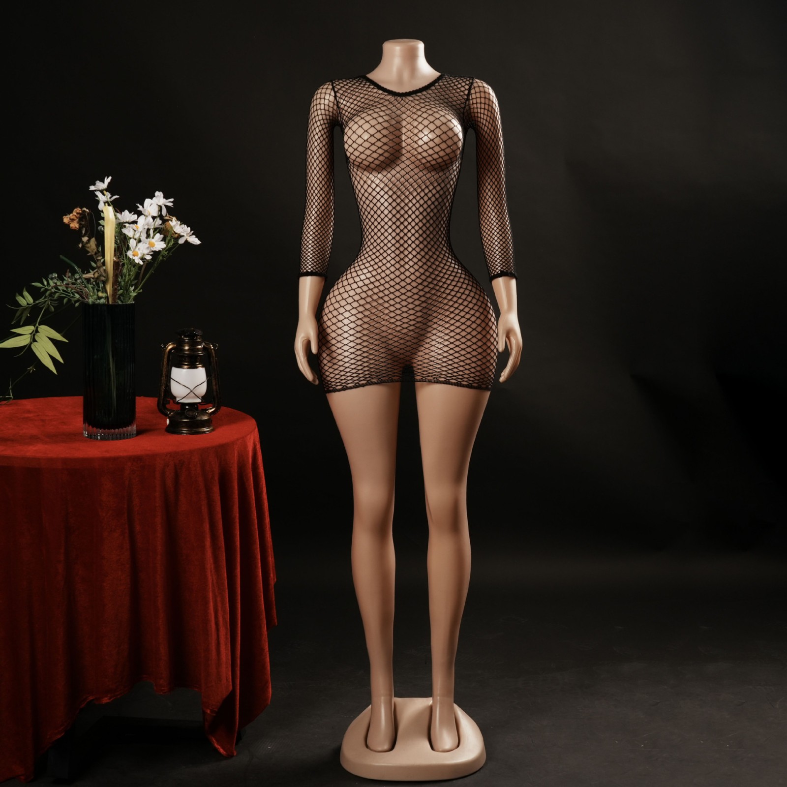 Women Body Stockings Fishnet Short wrap Dress Long sleeve Tights Underwear 4019