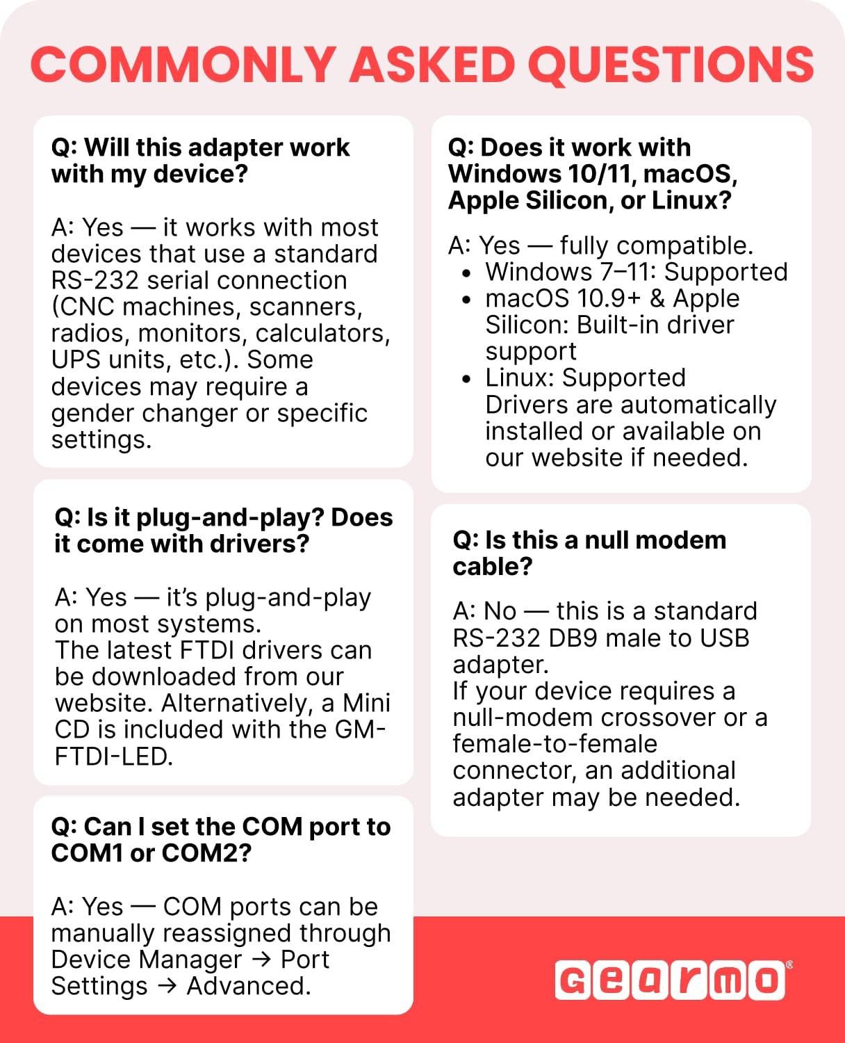 USB to Serial RS-232 Adapter with LED Indicators, FTDI Chipset, Supports Wind...
