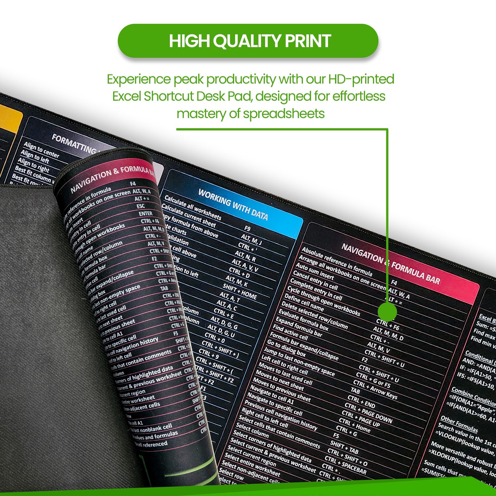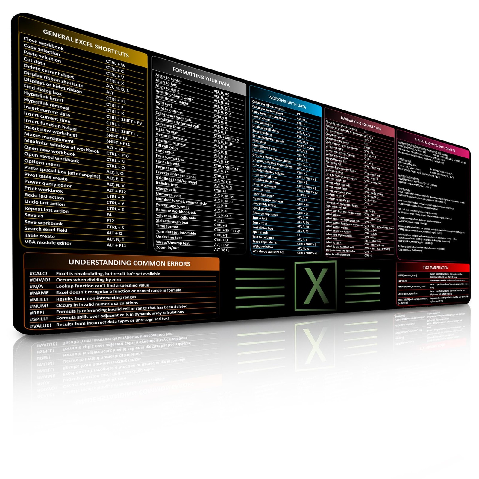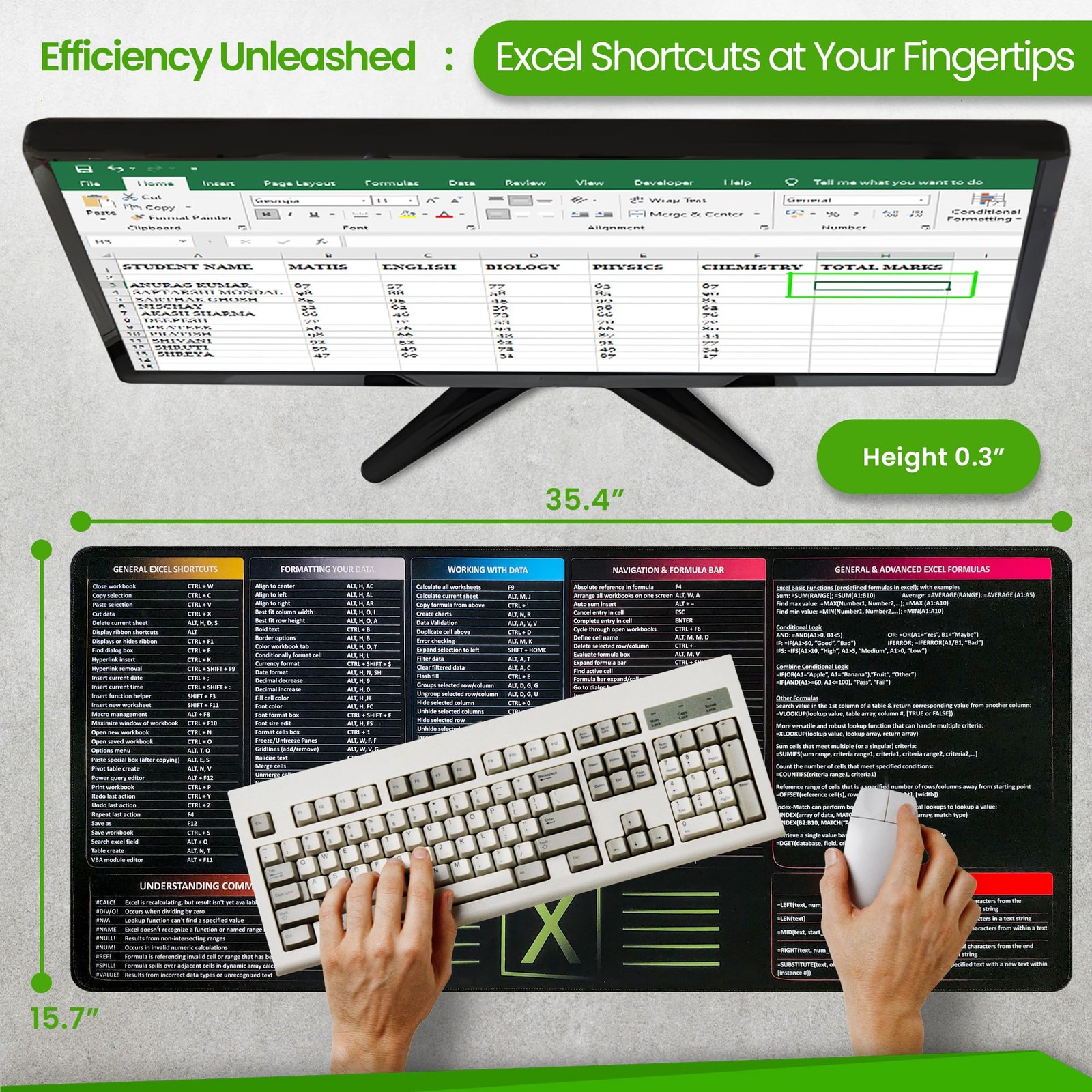 Large Excel Cheat Sheet Desk Pad Excel Pad Shortcut Keys Mouse Mat - Extend...