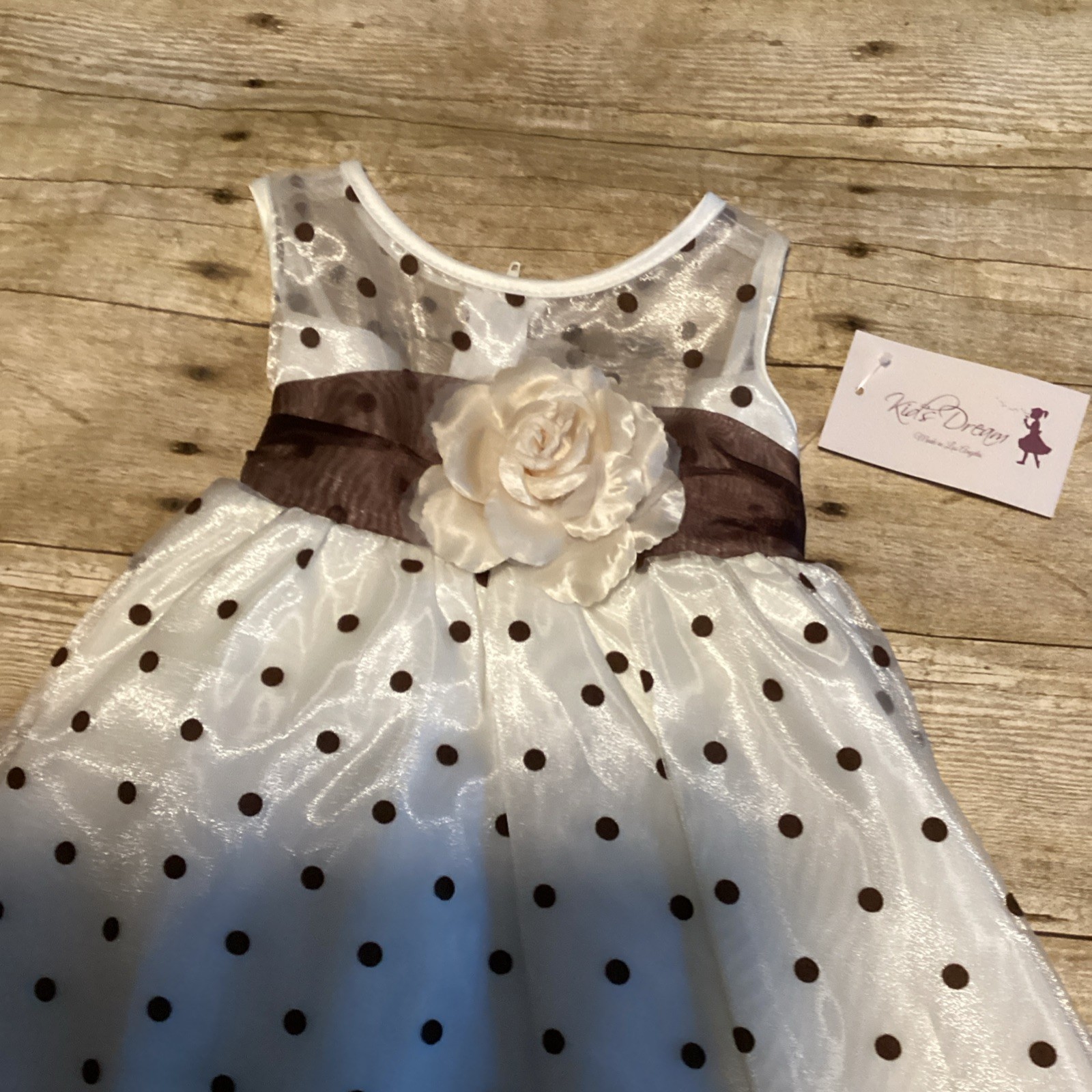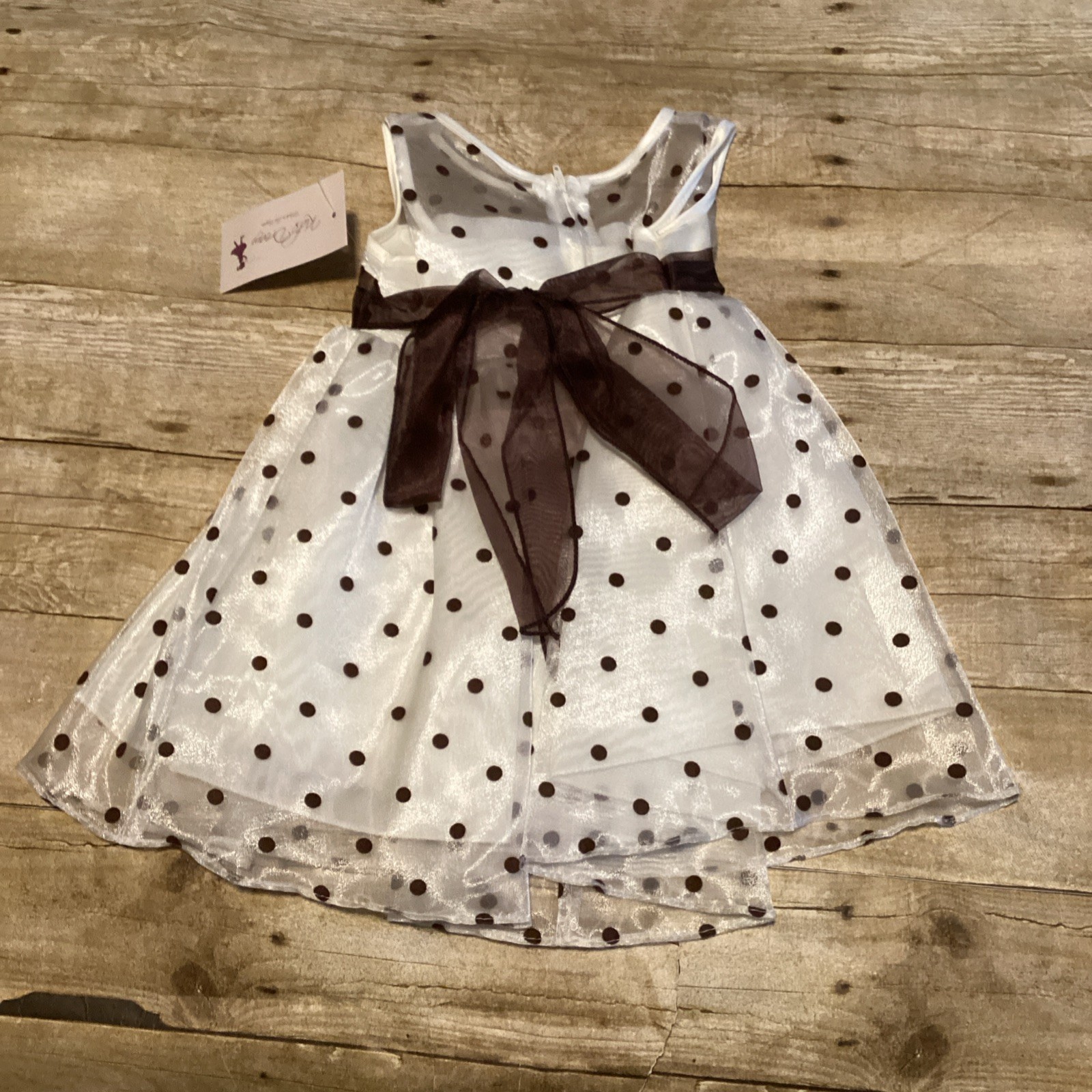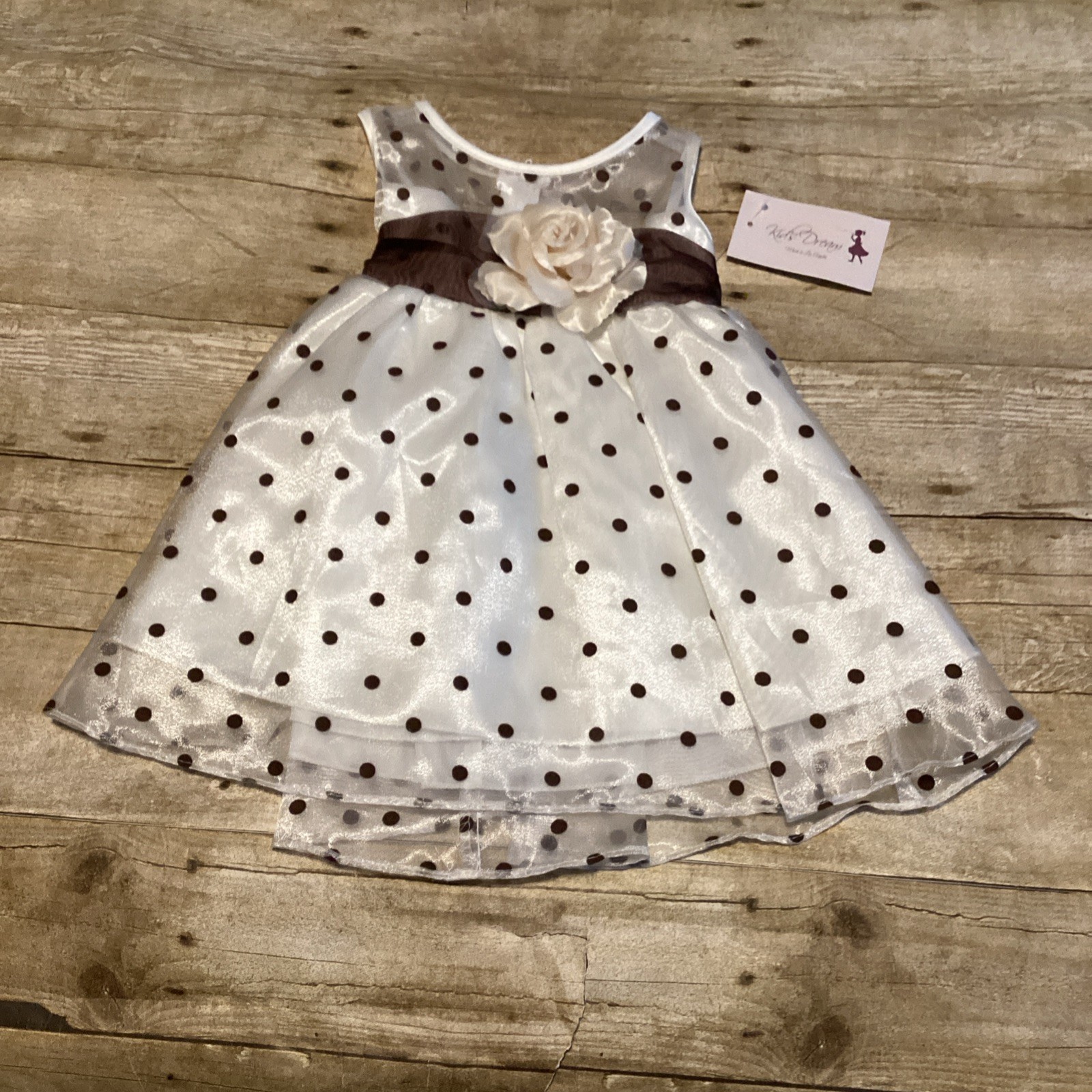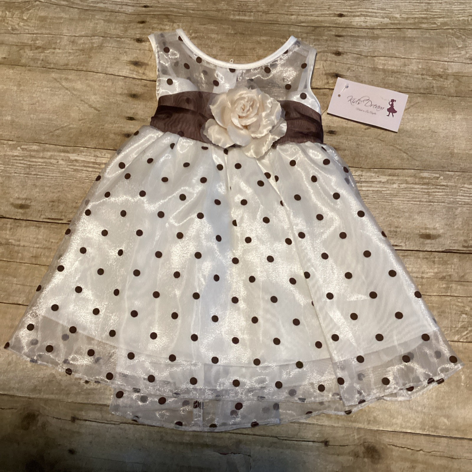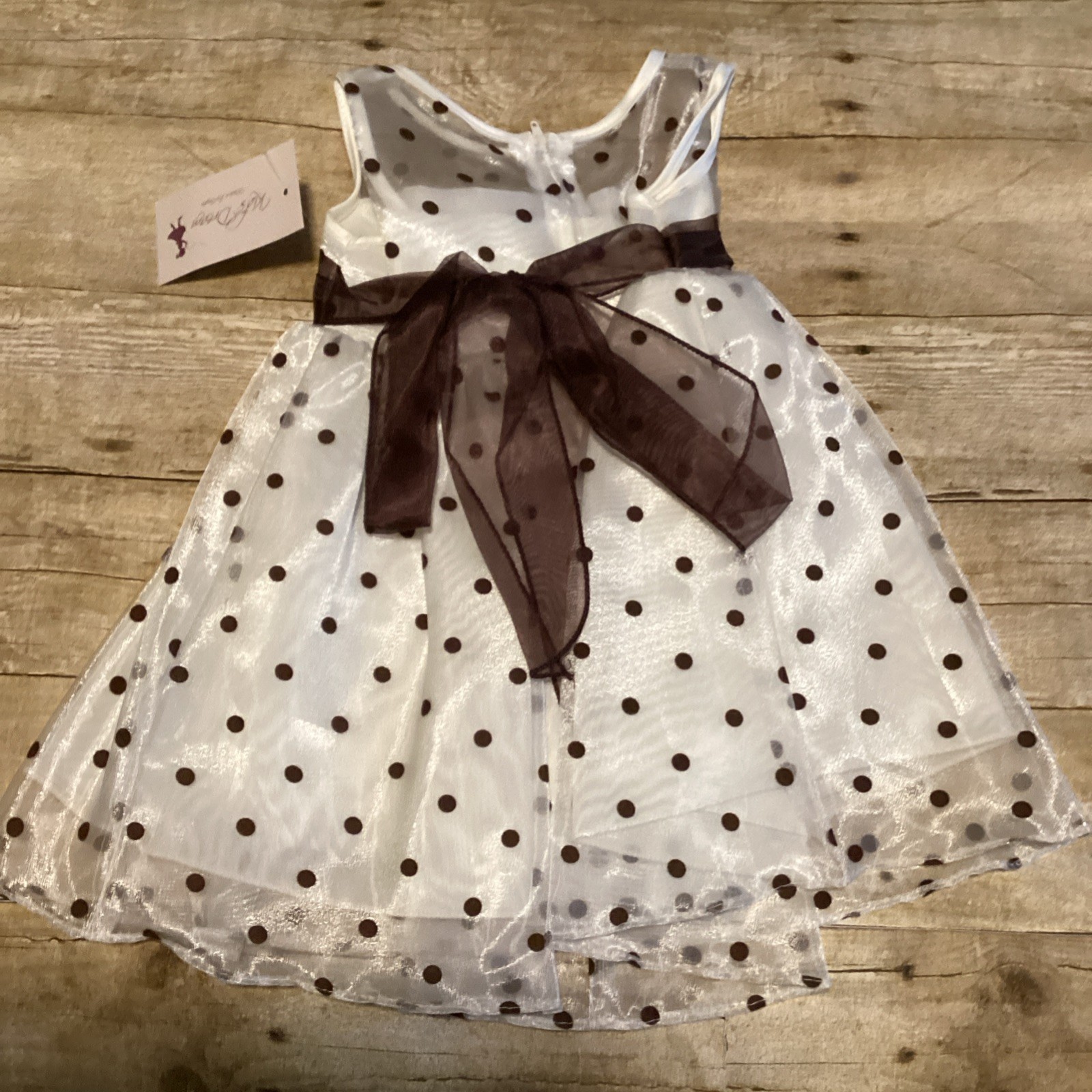 Katie Brown Girls' White Brown Polka Dot Flower Girl Dress with Sash