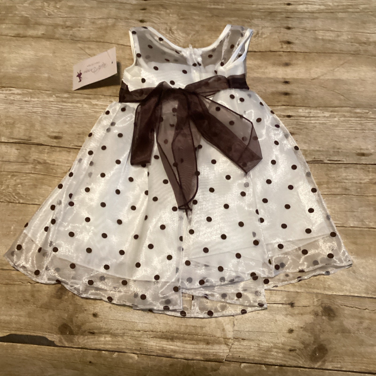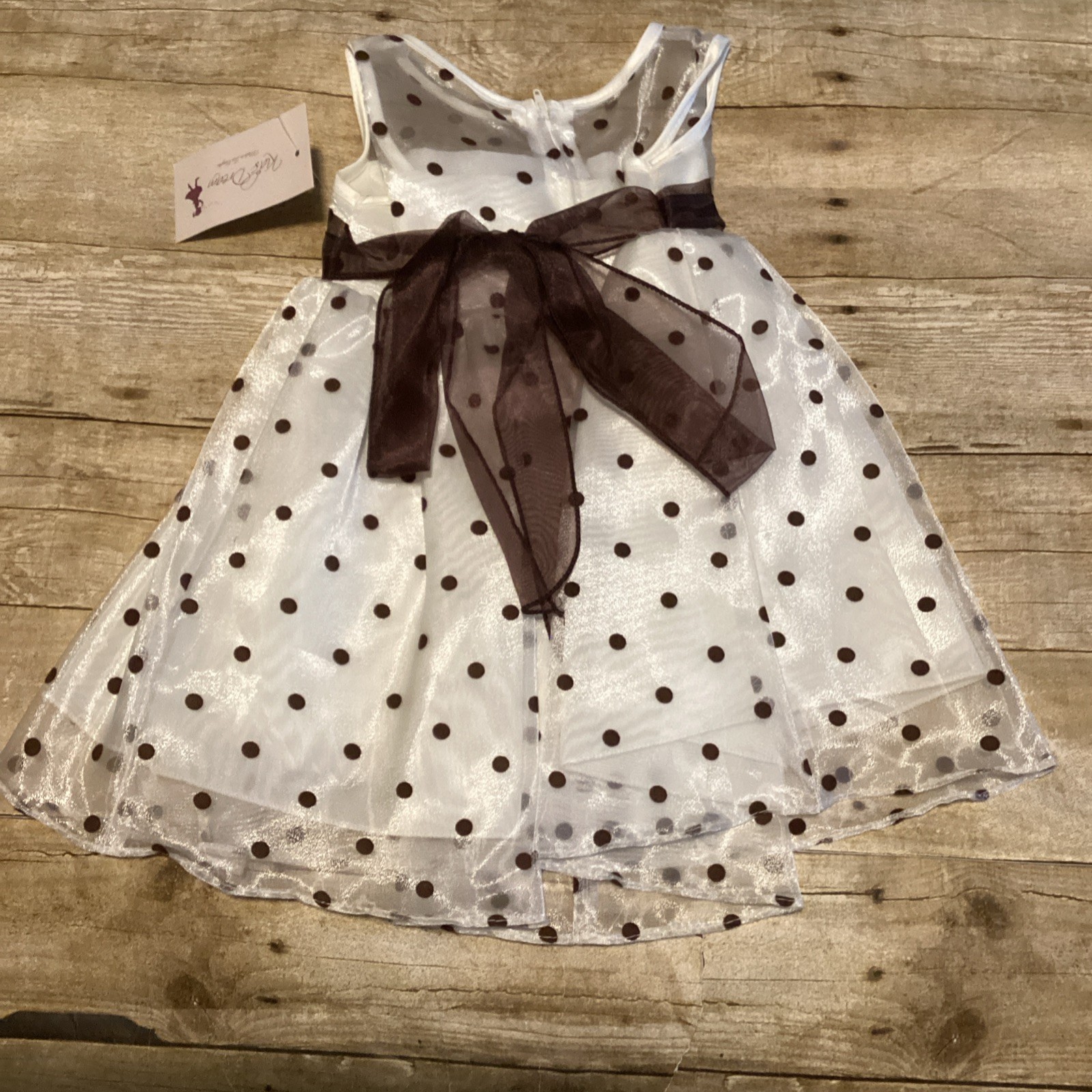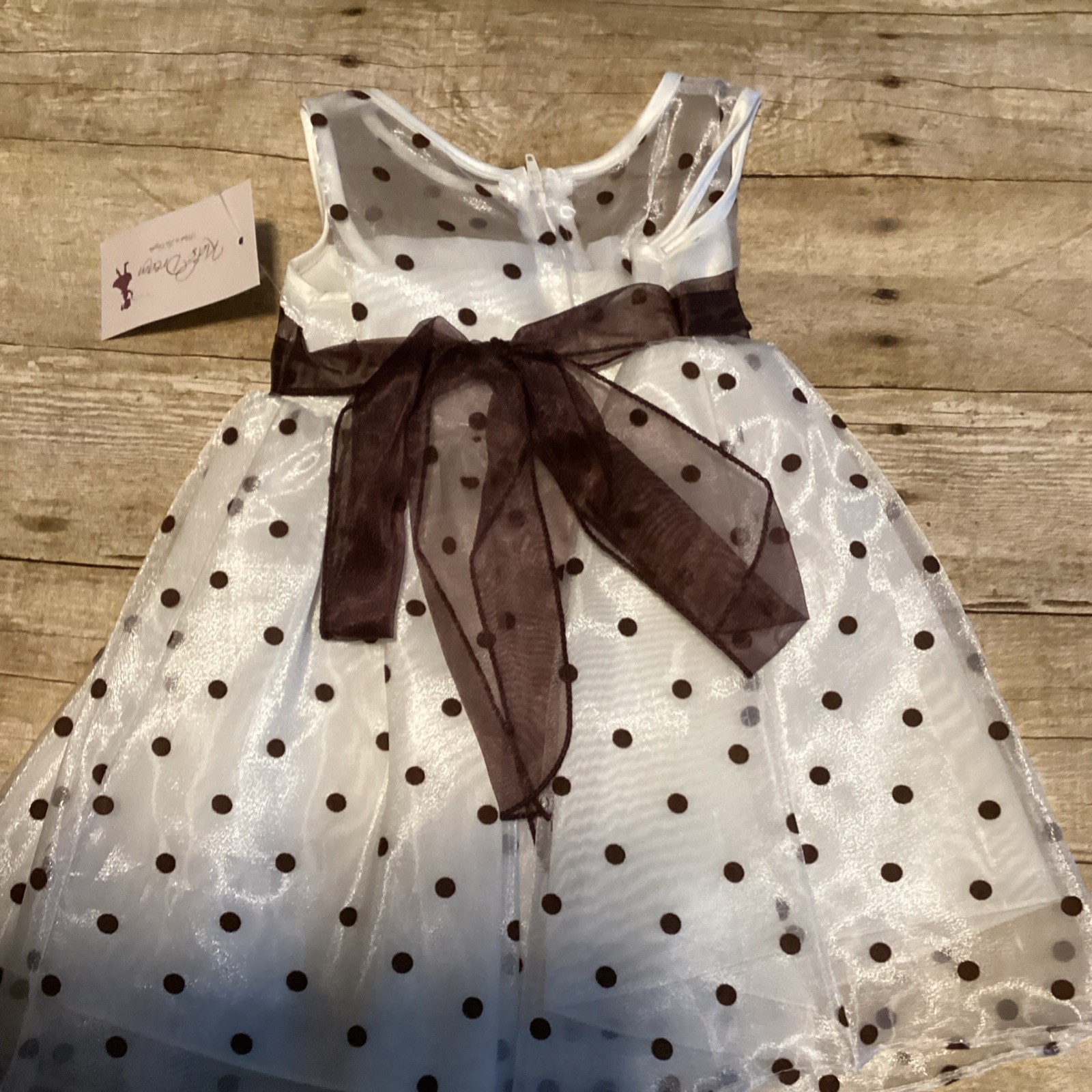 как выглядит Katie Brown Girls White Brown Polka Dot Flower Girl Dress with Sash фото