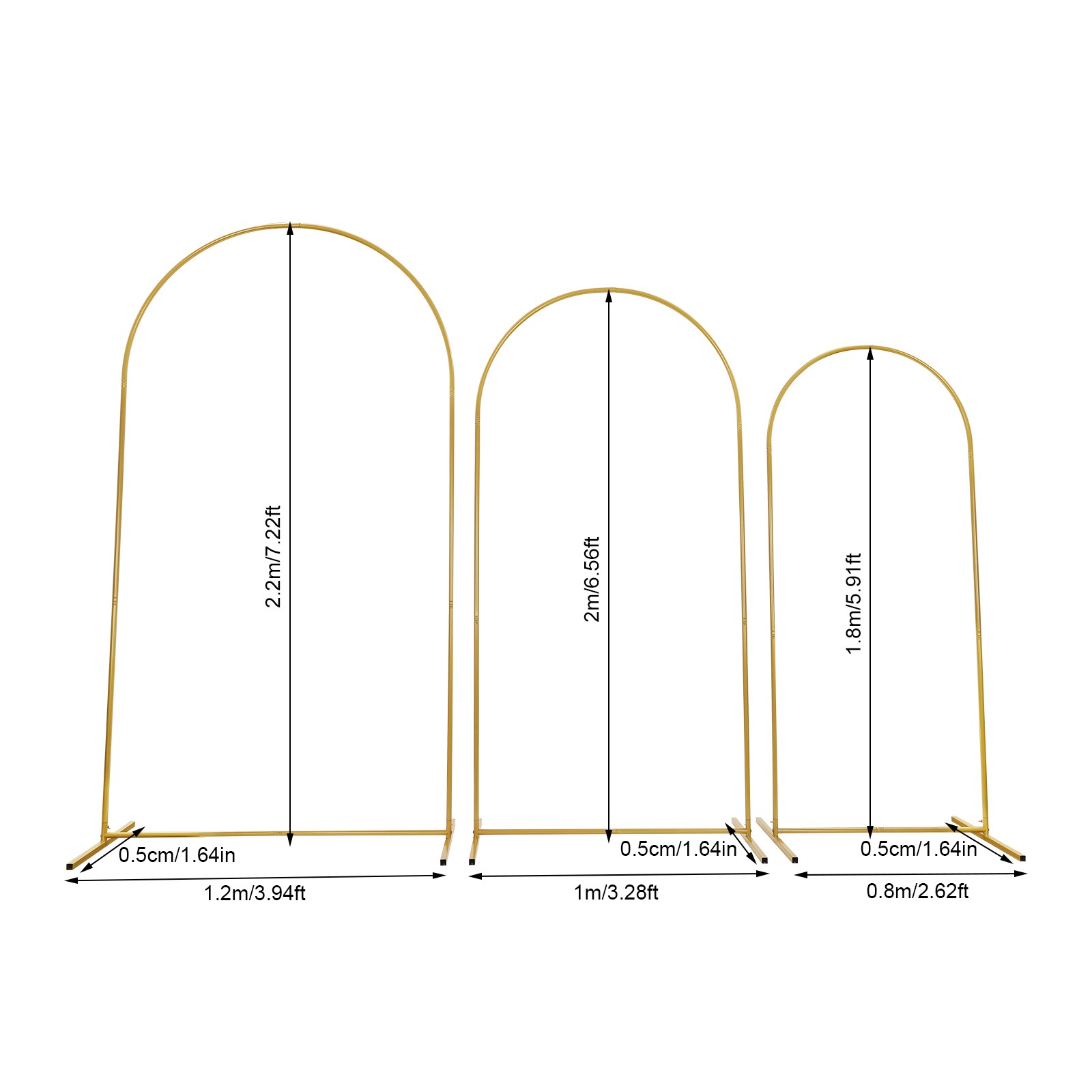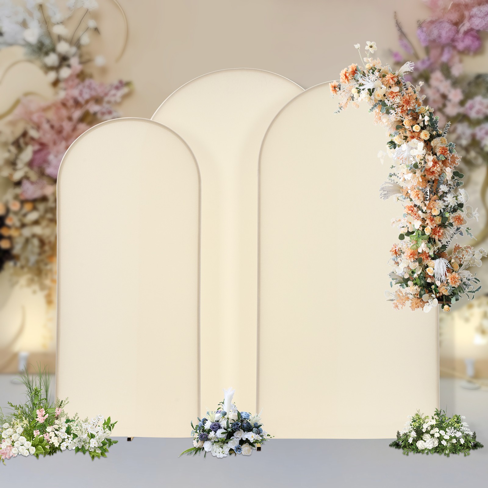 Set of 3 Metal Arch Backdrop Stand Gold Beige Wedding Party Arch Backdrop Stand