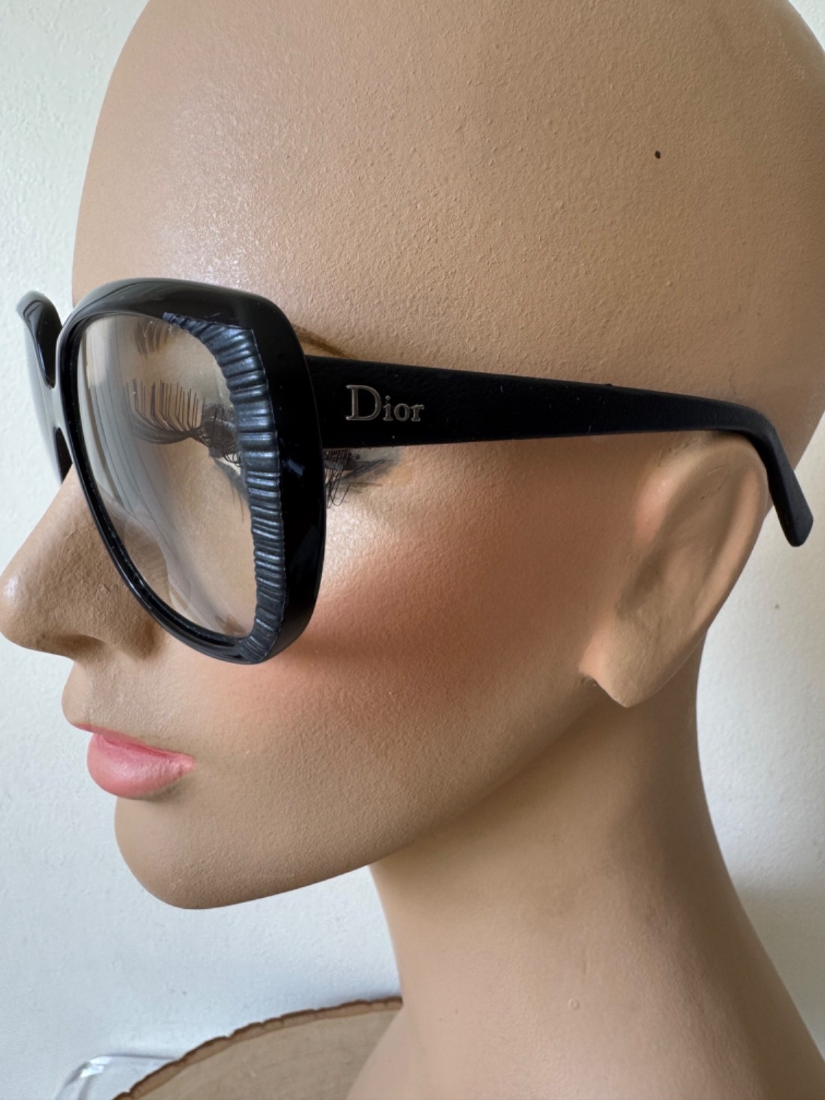 как выглядит Christian Dior Taffetas Oversized Black Glasses Ribbed Frame Vintage Frames фото