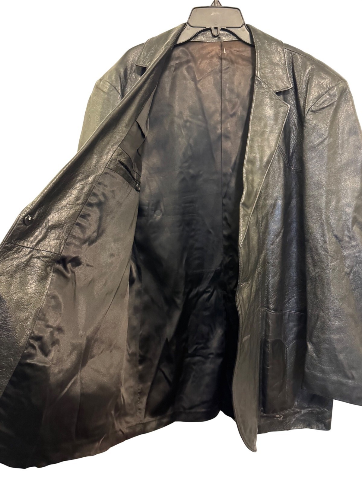 как выглядит Vintage Scully Mens Black Leather Blazer Jacket Size 44 Button-Front фото