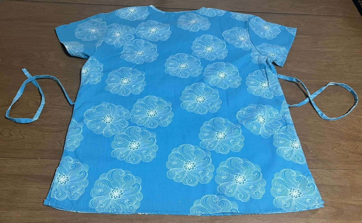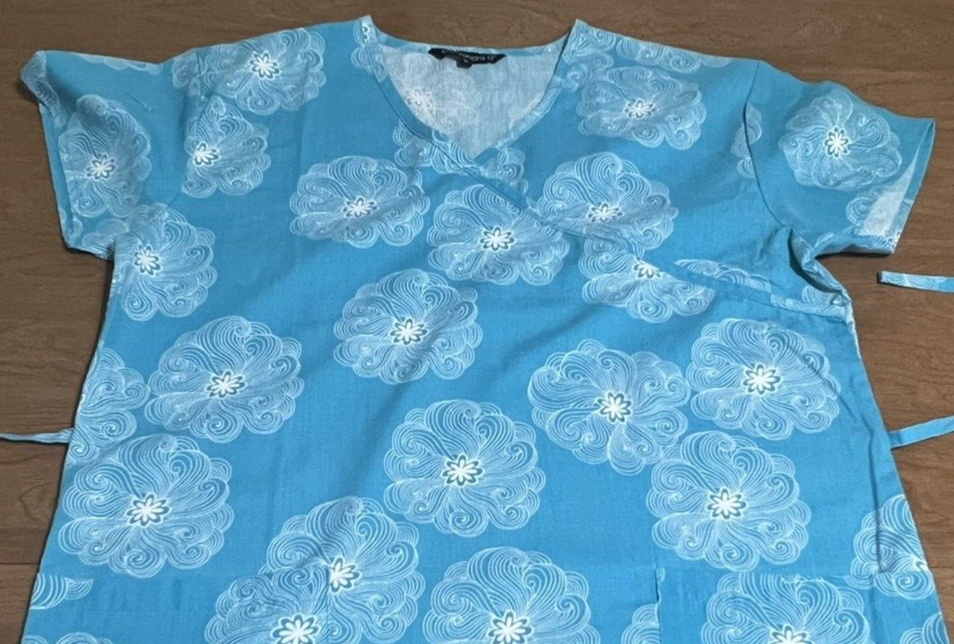 как выглядит Cassandra O Womens Medium Blue Floral Scrub Top Tie Back Nurse фото