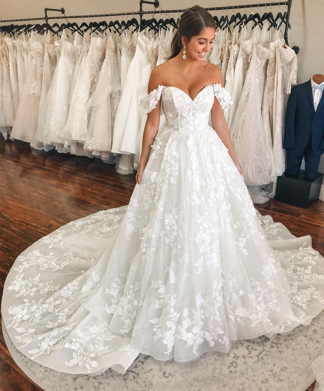 Gorgeous Wedding Dresses Lace Flower Appliques Off Shoulder Bridal Gowns