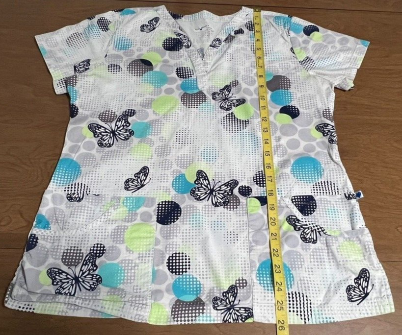 как выглядит Nurse Mate Womens Medium Scrub Top Butterfly Polka Dot V-Neck Multicolor Uniform фото
