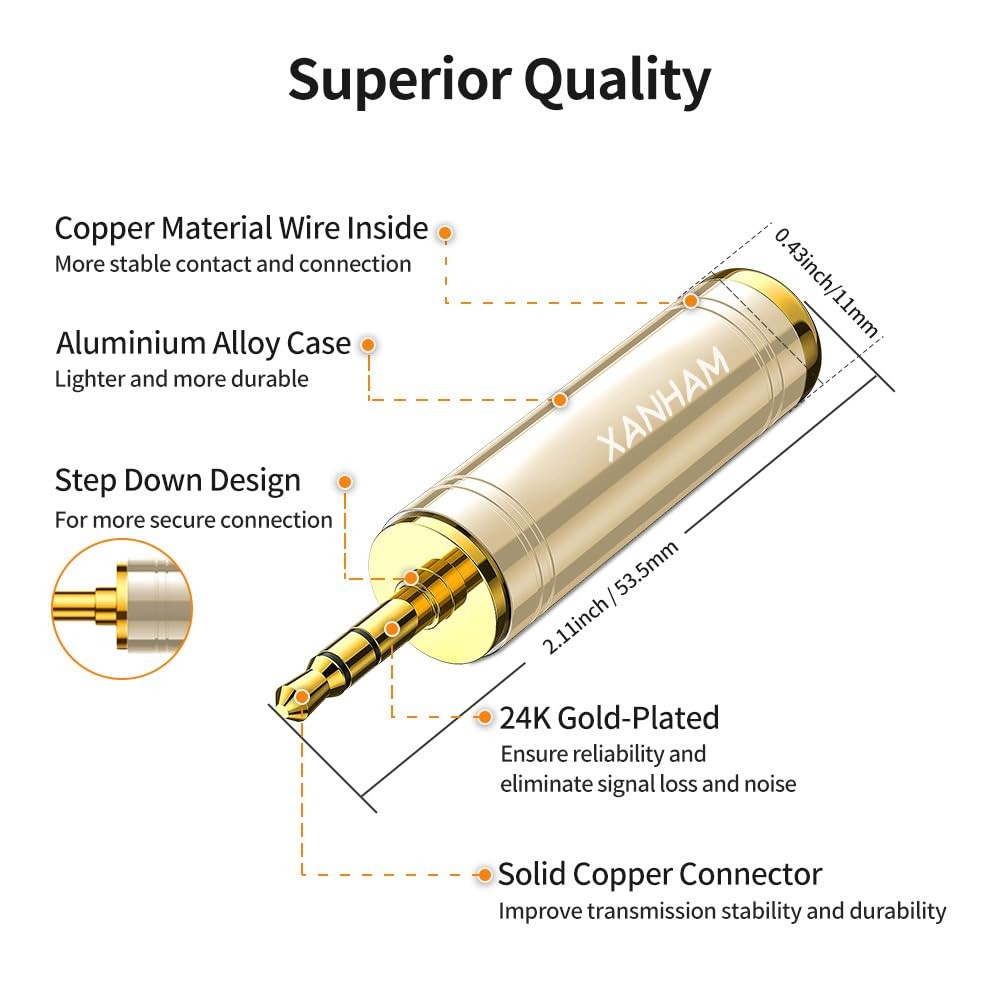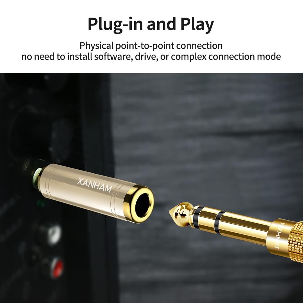 XANHAM 1/4 Inch 6.35mm Female to 1/8 3.5mm Male TRS Stereo Audio Gold
