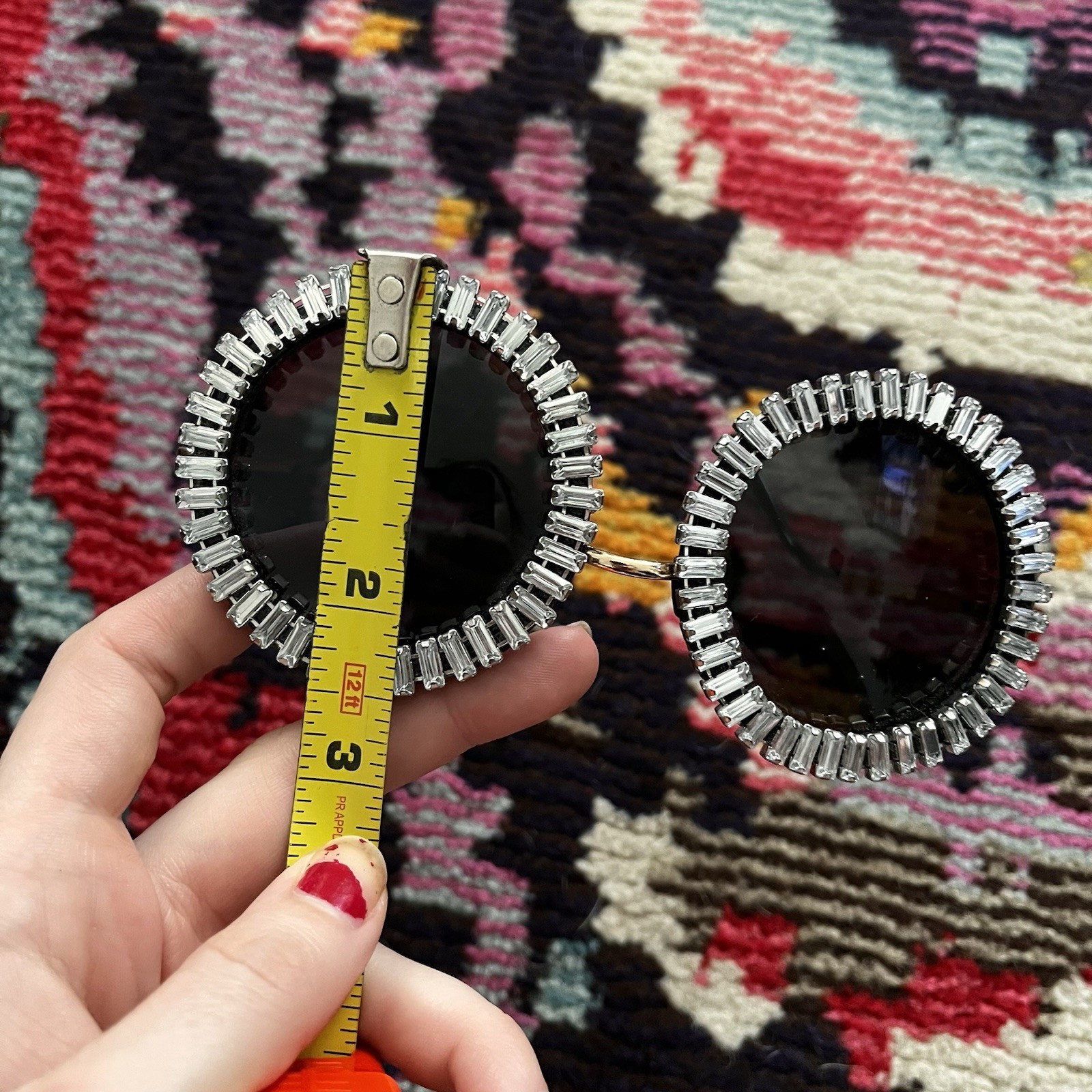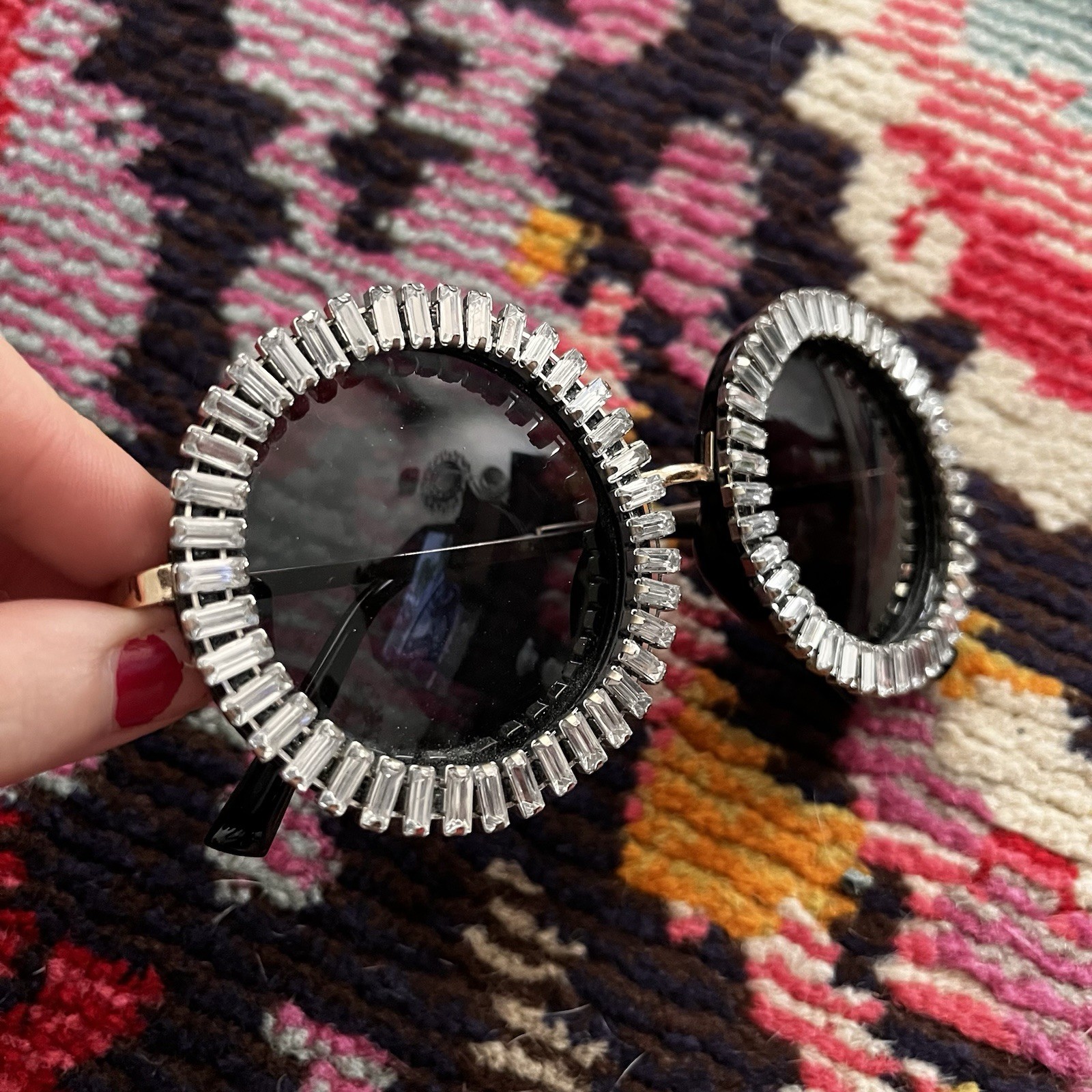 как выглядит Big Round Black Sunglasses Bling Gems Clear Crystal Rhinestone Festival Shades фото