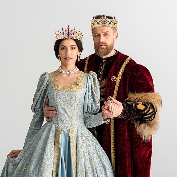 как выглядит 2 Pcs King and Queen Crowns Set King Crowns for Men Royal Crown with Black Rhine фото