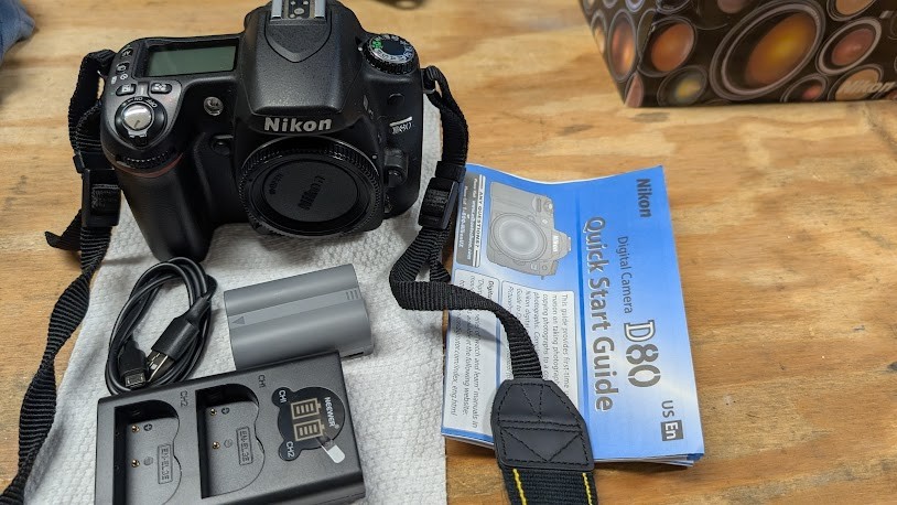 Nikon D80 DSLR Camrea body only w/bag,strap,batteries,charger, power units,book
