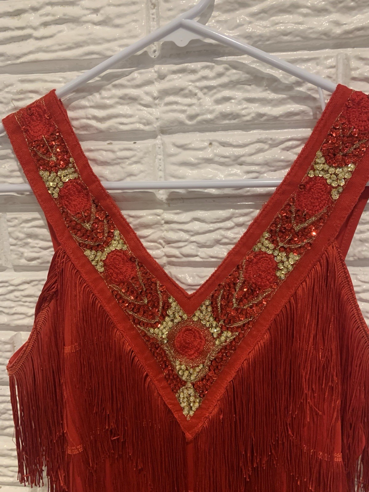 как выглядит Dreamgirl Red Beaded Fringe Dress Size Large Girl