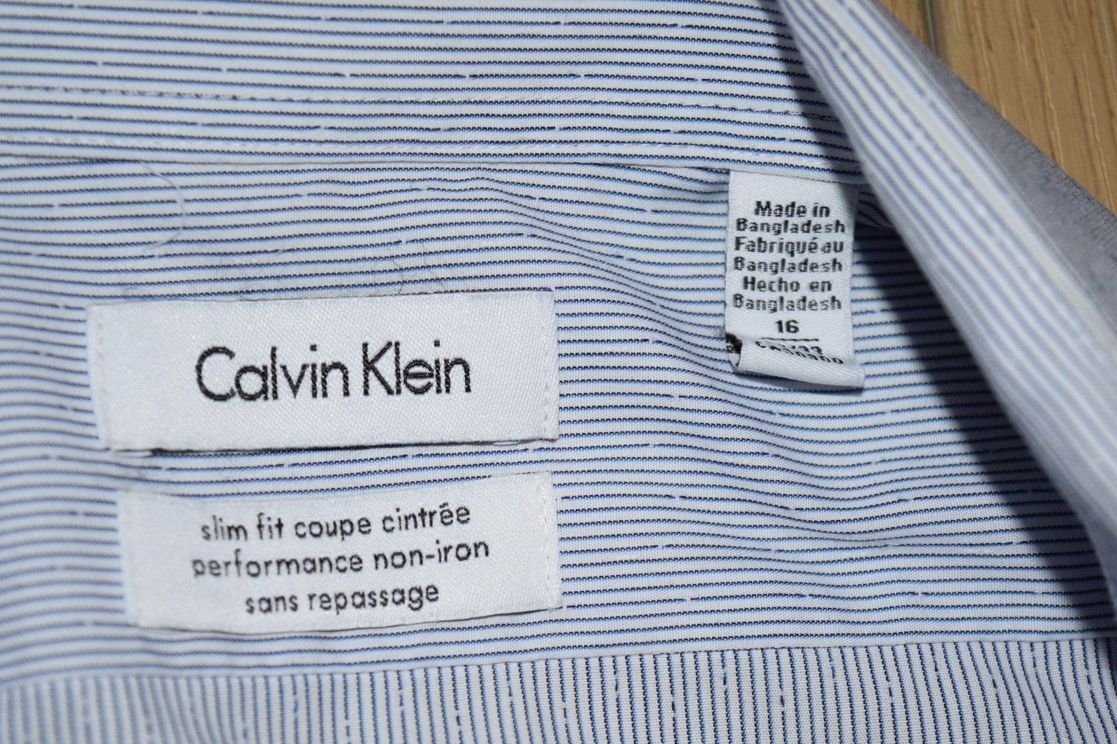 как выглядит Calvin Klein Non Iron Slim Fit Cotton Mens Shirt White Blue 16, 32/33 фото