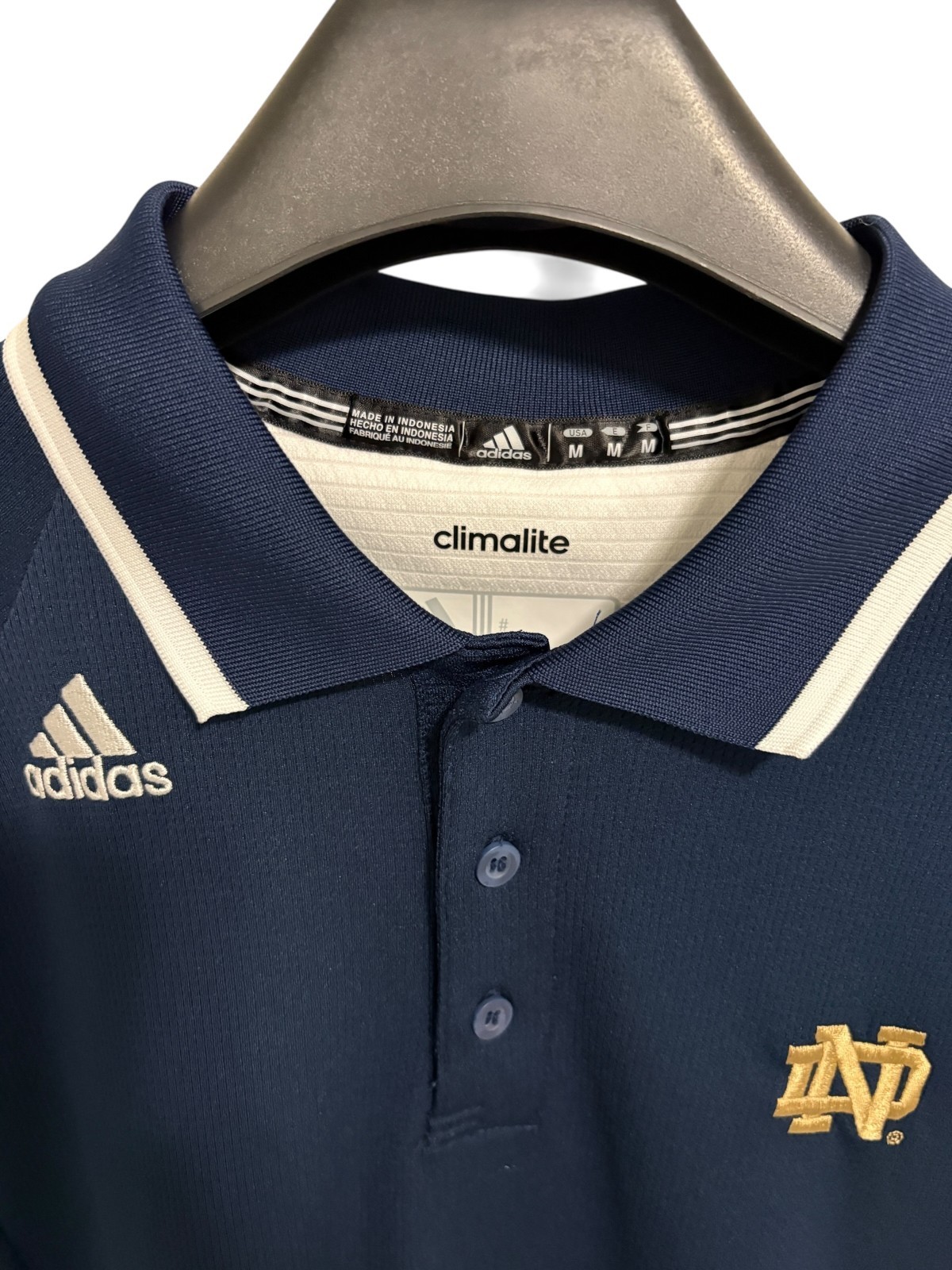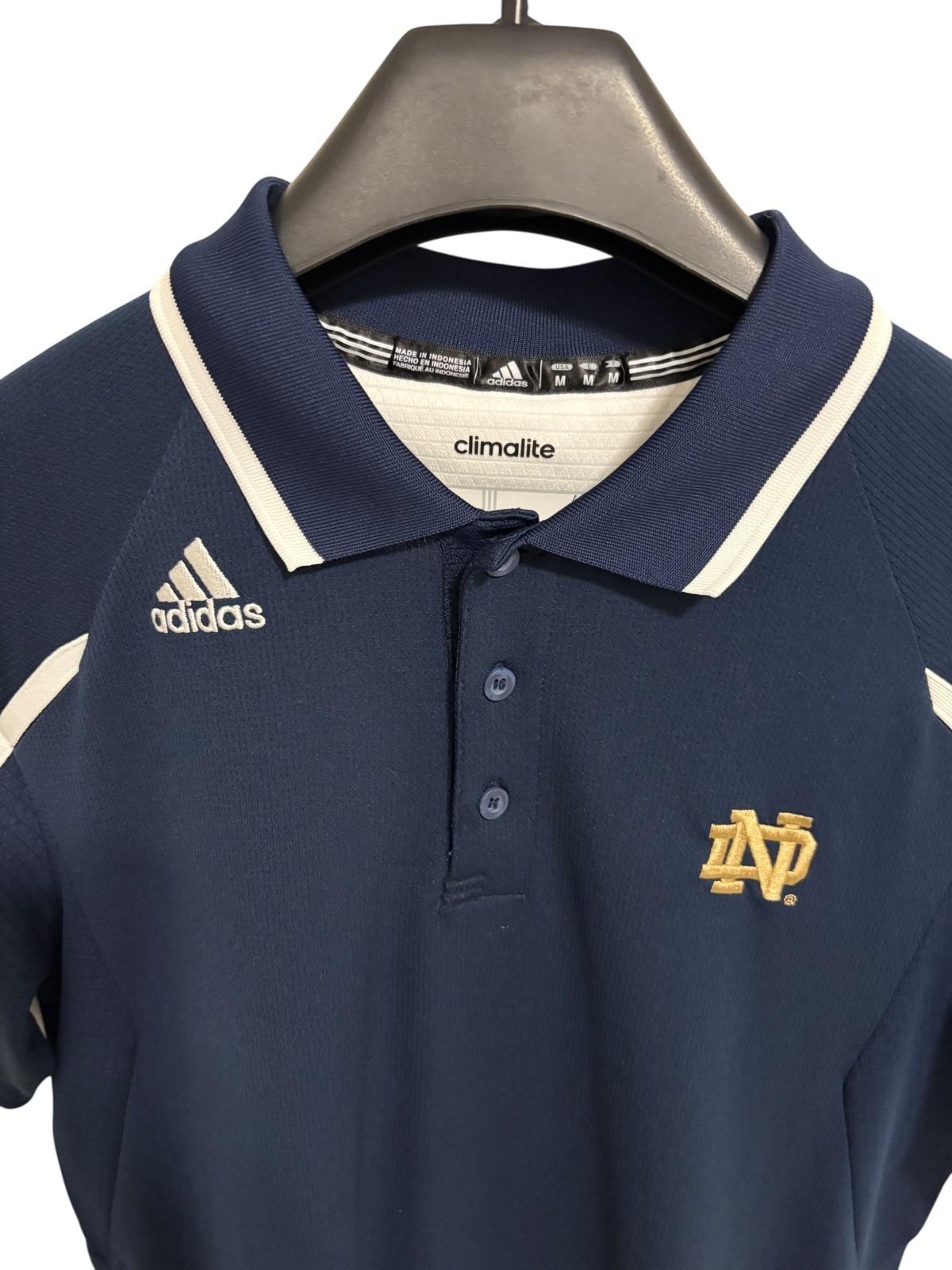 как выглядит Adidas Climalite Notre Dame Fighting Irish Polo Shirt Size Medium Blue фото