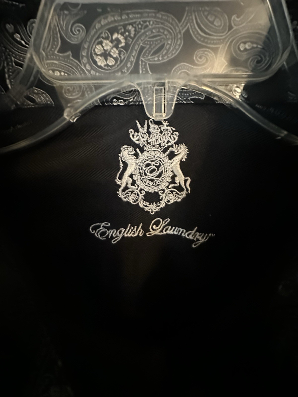 как выглядит English Laundry Mens Size 16-32/33 Black Embroidered Cotton L/S Dress Shirt фото