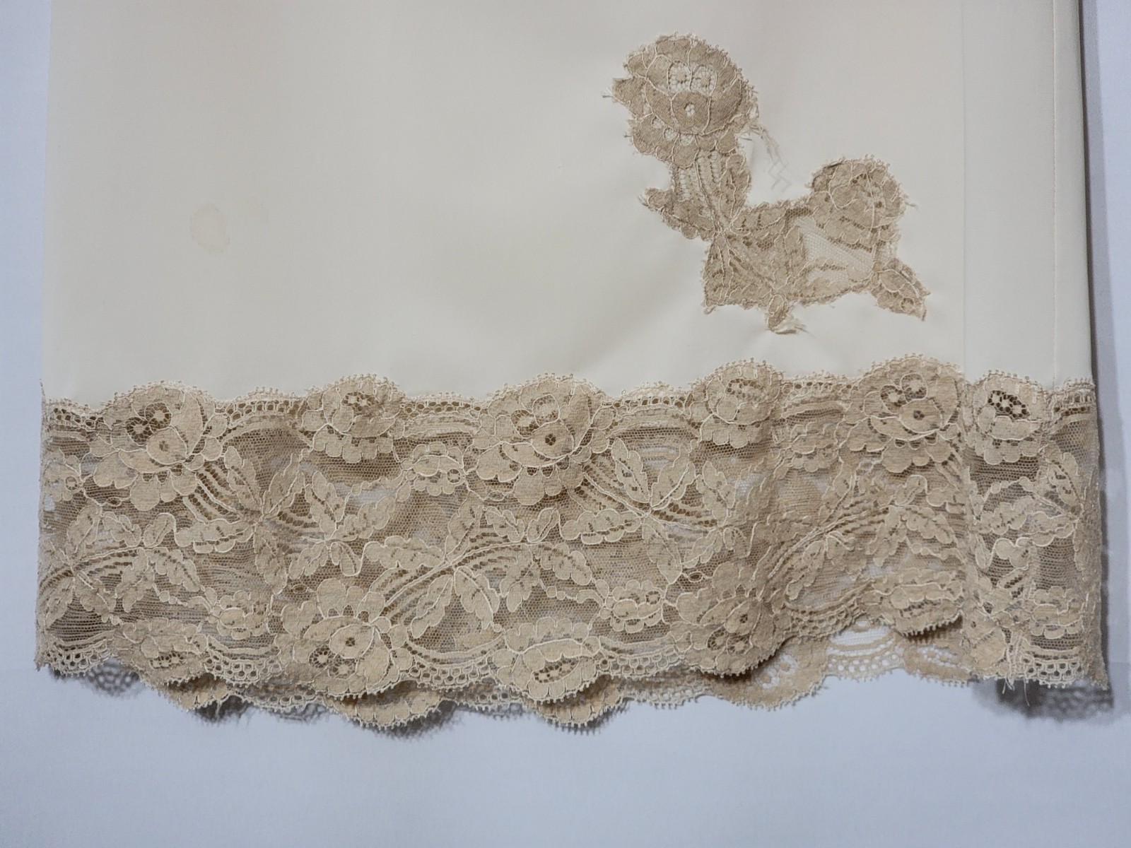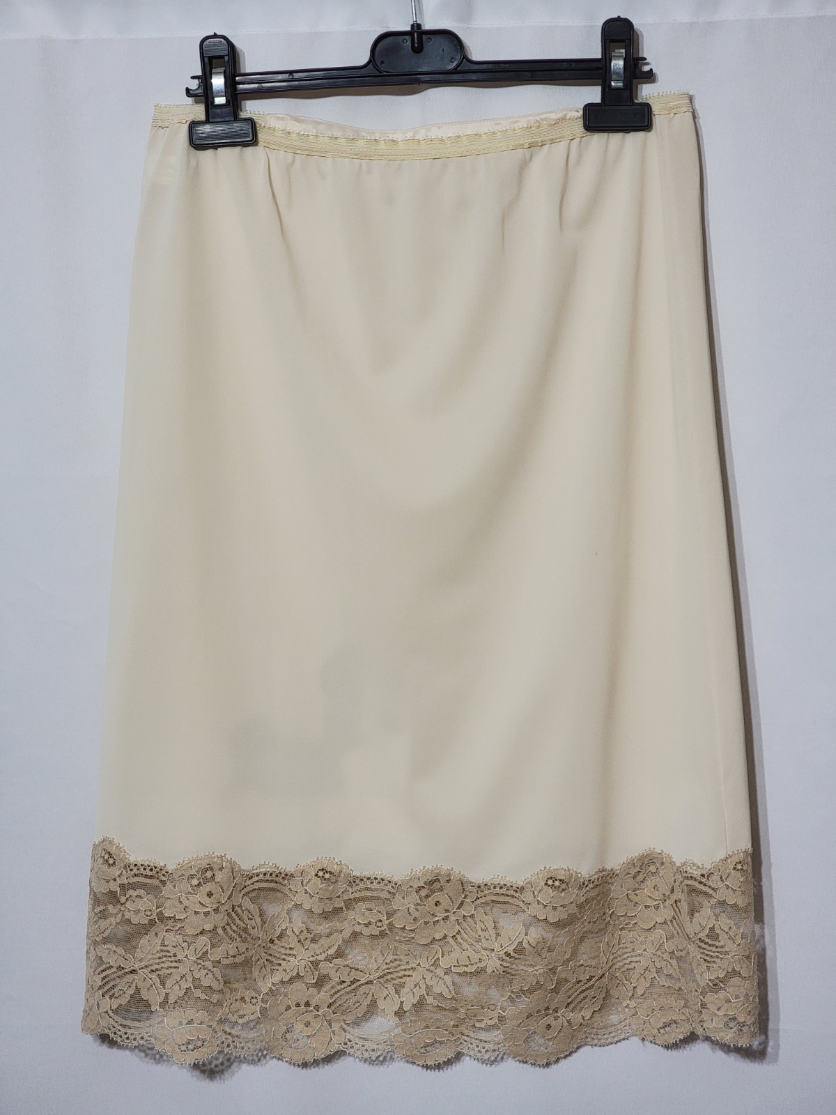 как выглядит VINTAGE WONDER MAID BEIGE NYLON WITH LACE HEM APPLIQUE HALF SLIP SMALL фото