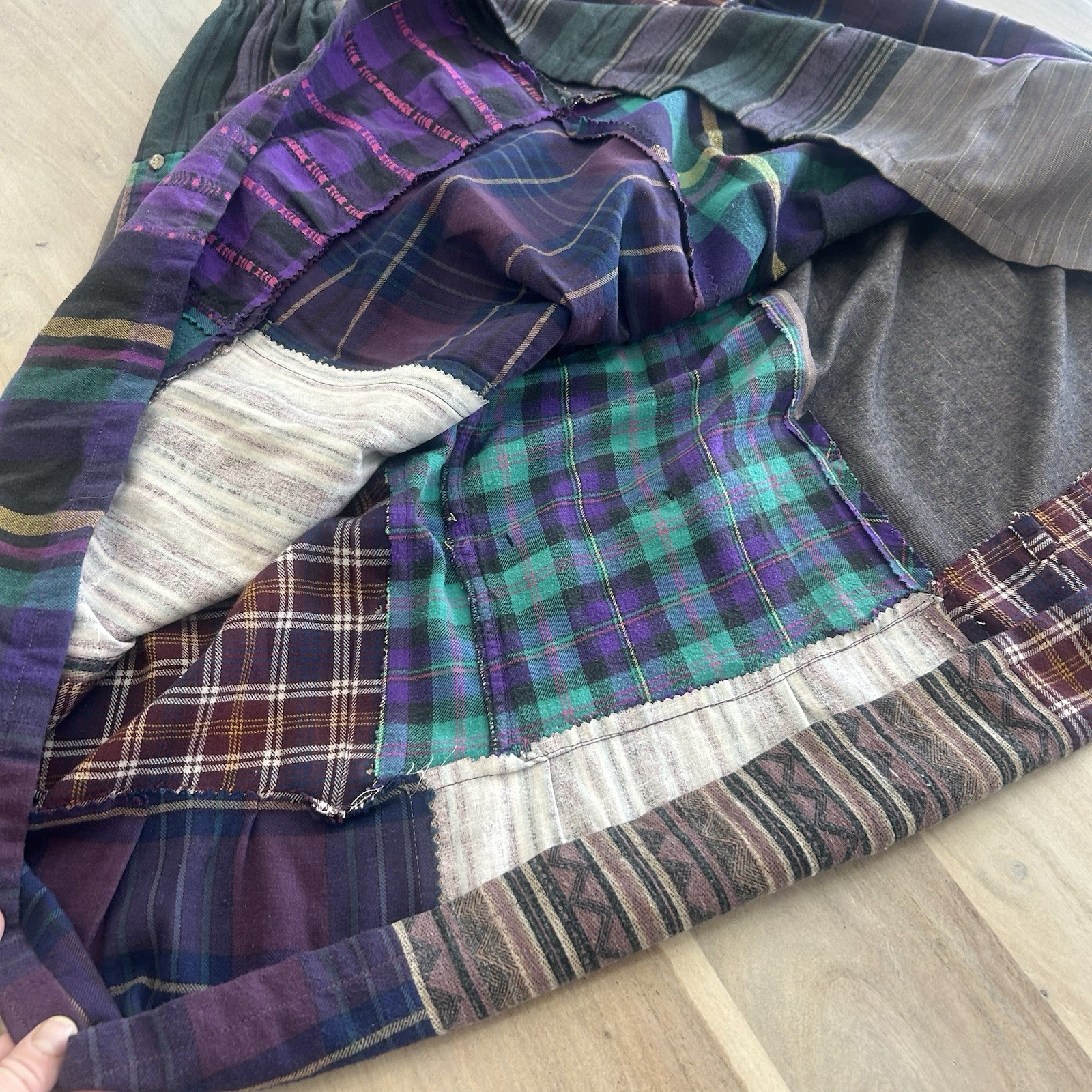Handmade Vintage Patchwork Quilt Like Maxi Skirt Boho Lagenlook Elastic Waist