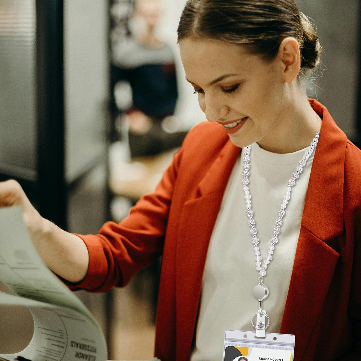 как выглядит Bling Beaded Retractable Lanyard for Women, Ideal for ID Badges Keys, Adjustab фото