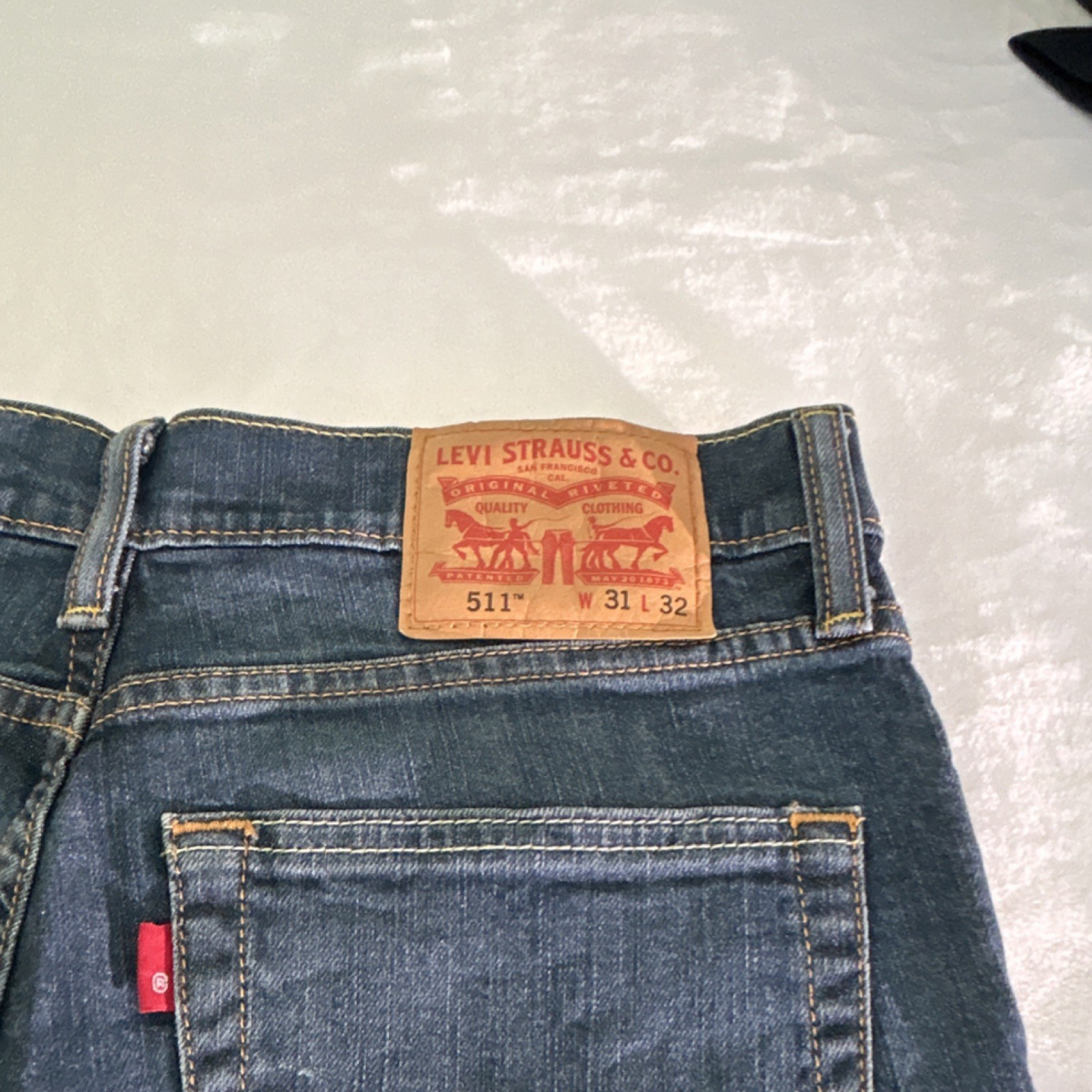 как выглядит Levis 511 Slim Fit Straight Blue Denim Jeans Logo Button 5-Pocket Medium Wash фото