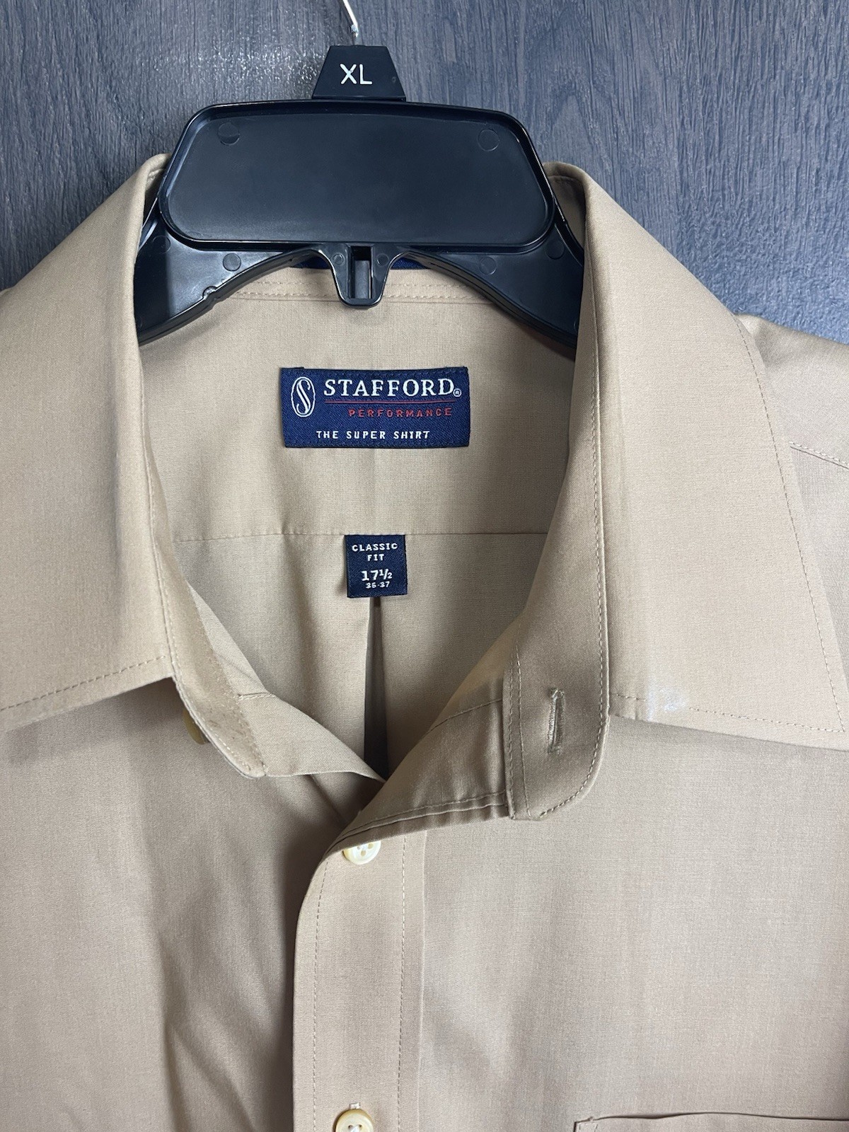 как выглядит Stafford Performance "Super Shirt" Mens Long Sleeve Button Up - 17 1/3 Tan фото