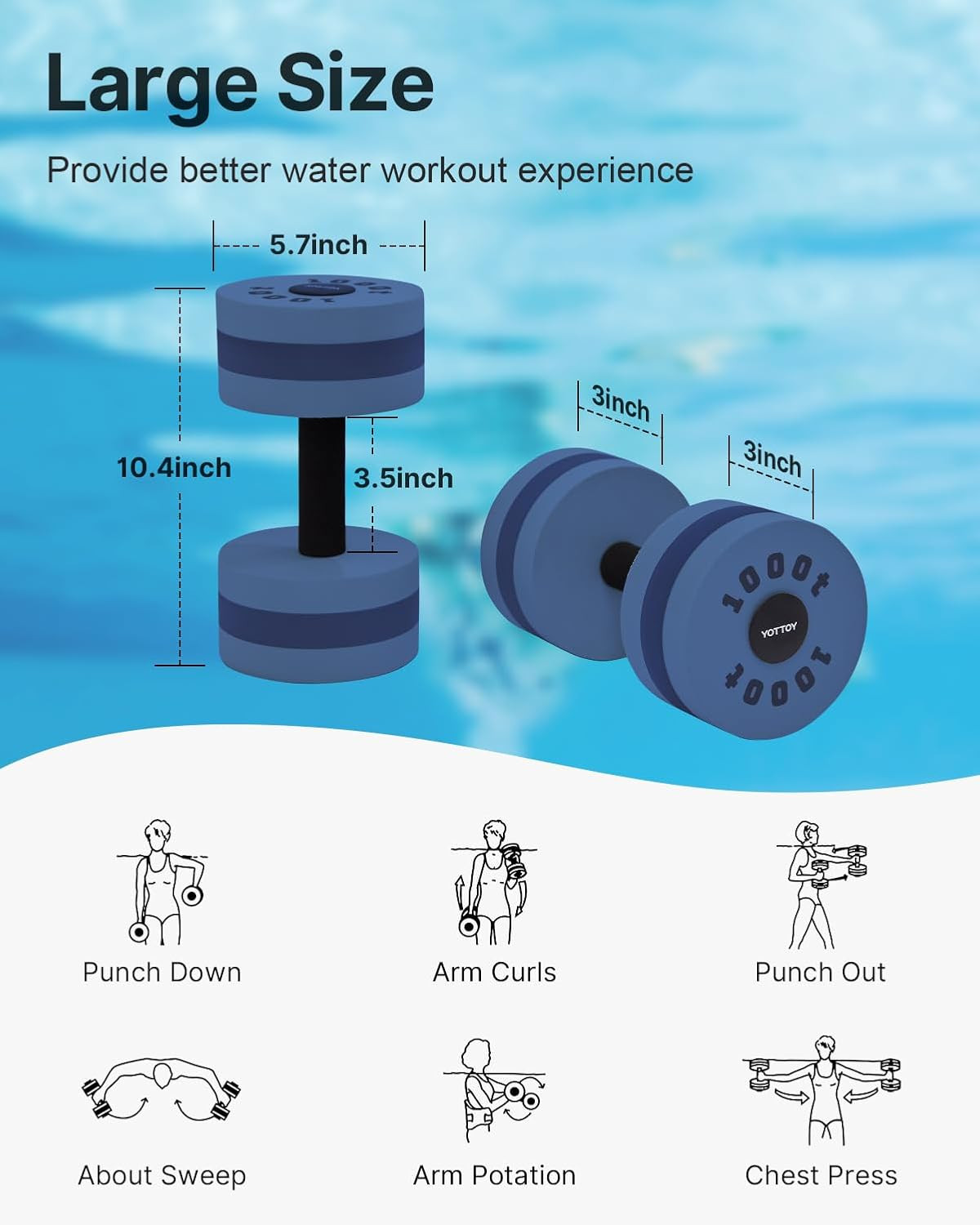 Water Dumbbells for Pool Exercise,Foam Aquatic Dumbbells for Water Aerobics,Resi