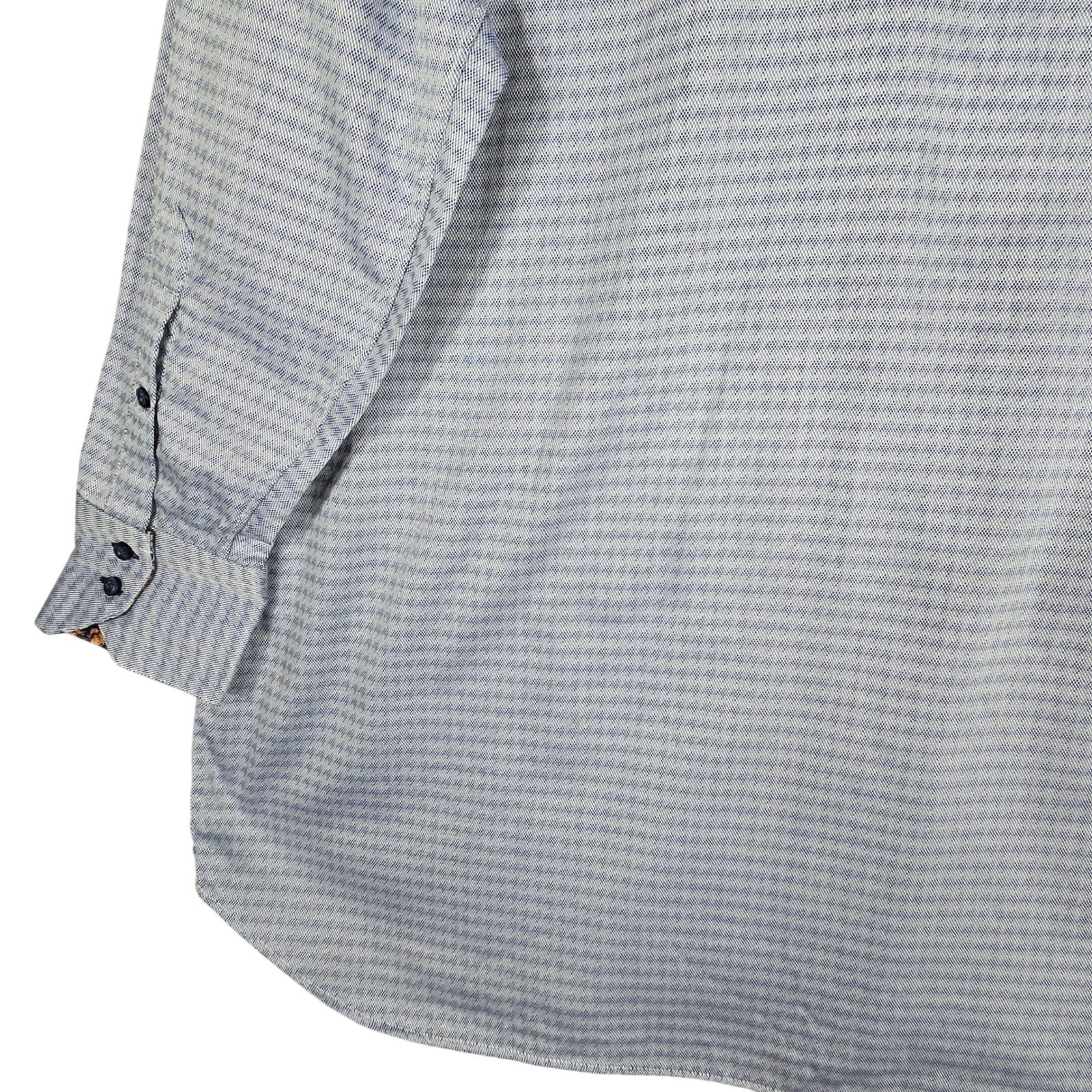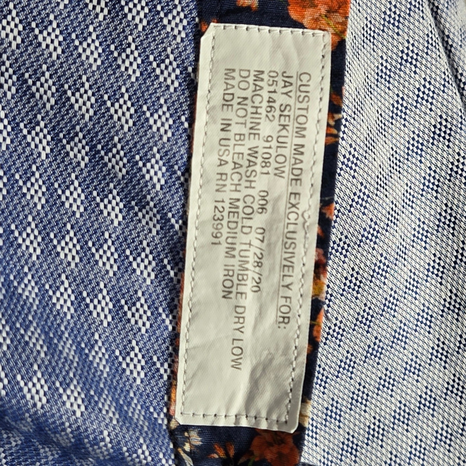 Holland Sherry Bespoke Shirt Mens 2XL Blue Geometric Savile Row Floral Trim